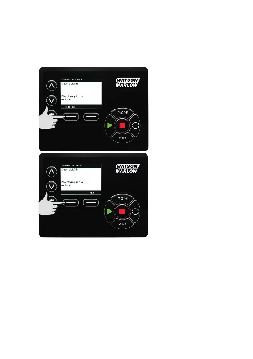 enter the PIN, use the ∧ /∨ keys to select each digit from 0-9. Once you have the required digit press the