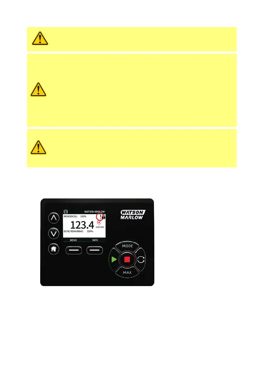 The ! symbol is a warning that the pump could remotely activate at any time. It will always be displayed