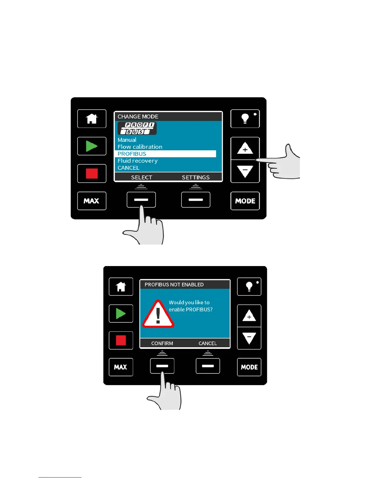 If PROFIBUS is not enabled, the screen below will prompt you to CONFIRM that you would