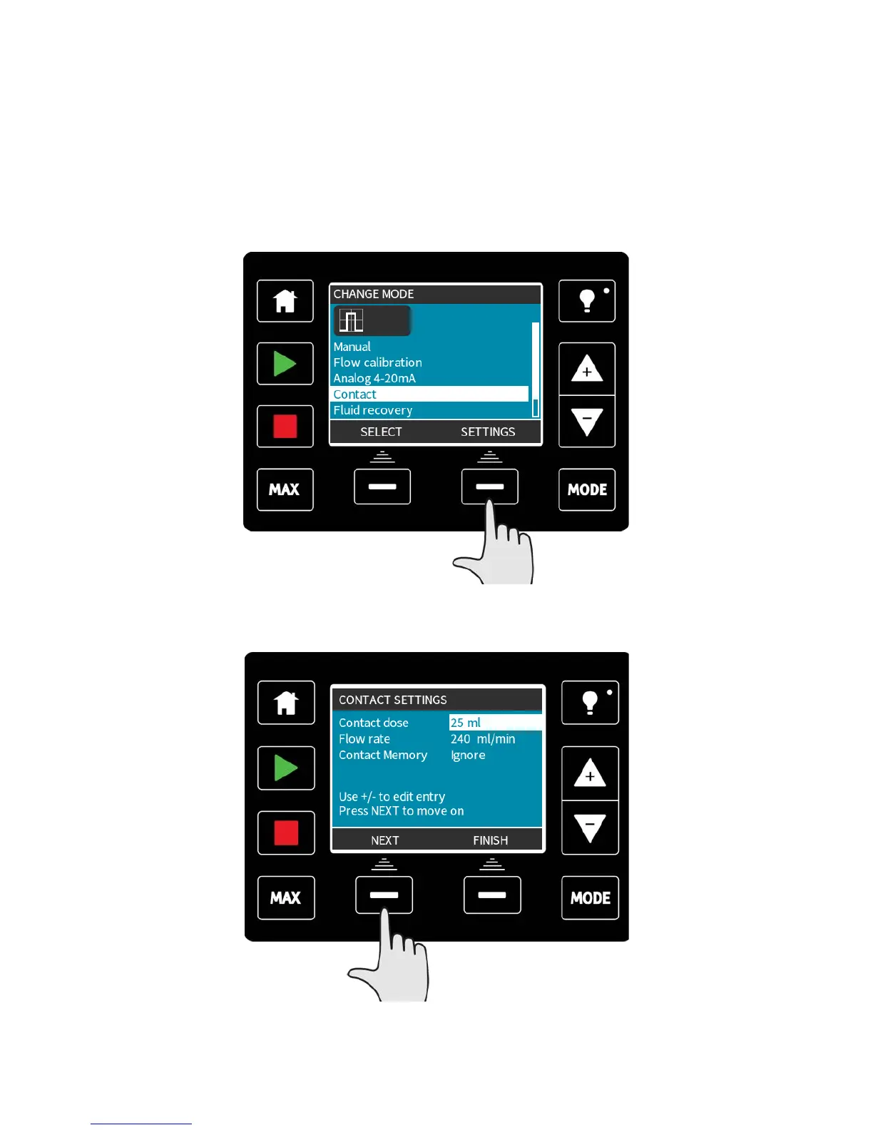 To setup contact mode, firstly you will need to define the settings. To do this, press the