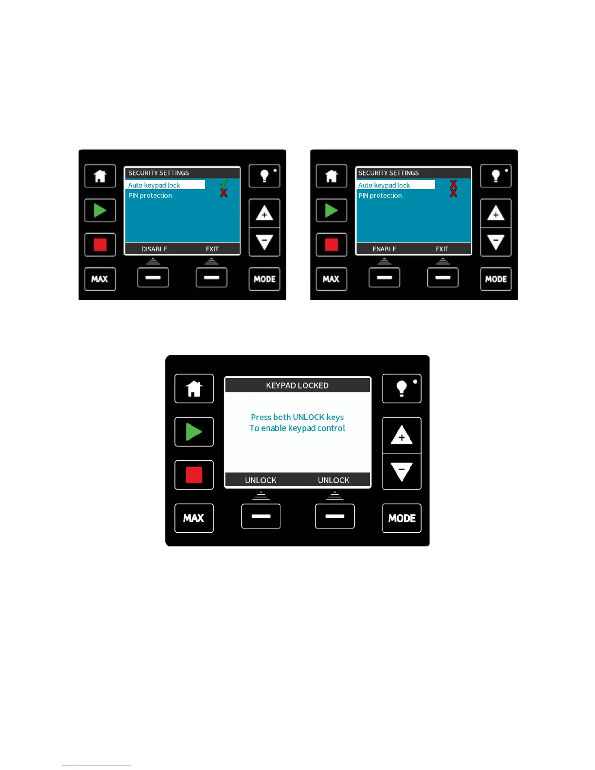 Press ENABLE/DISABLE to switch on/off the Auto keypad lock. When active the keypad