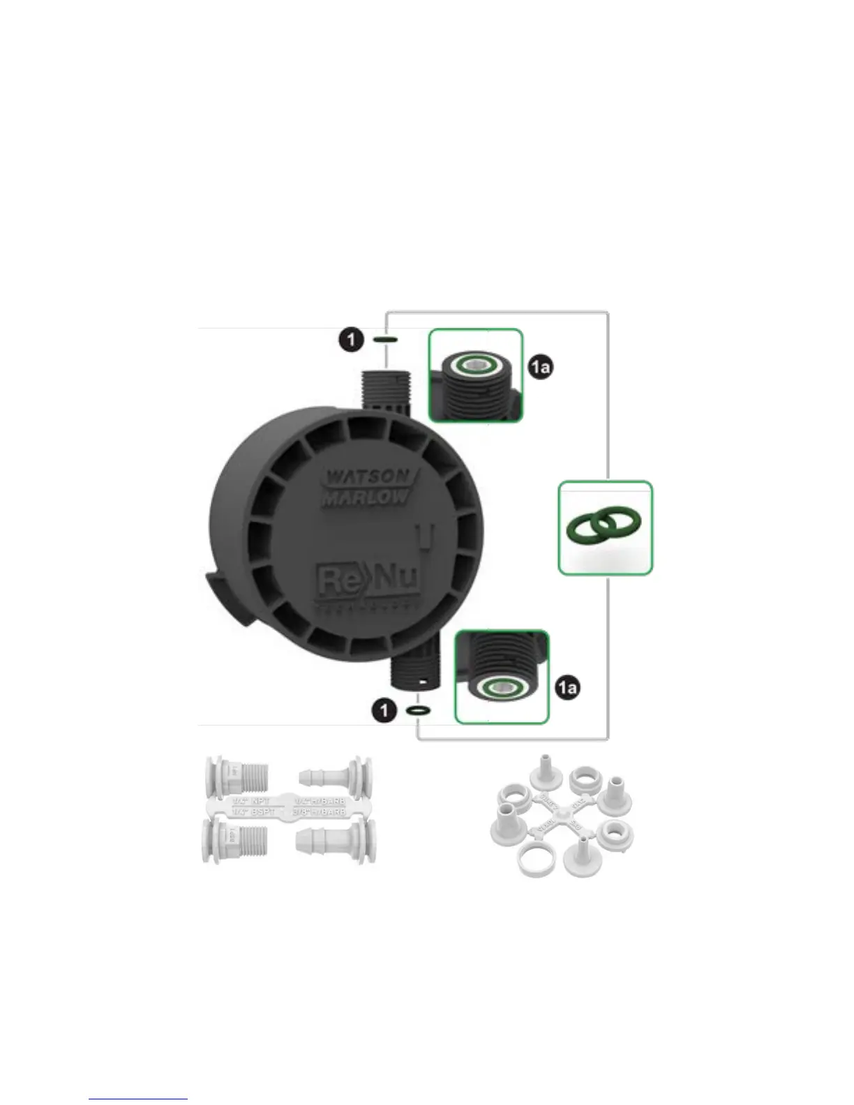 correctly fitted in the head ports (1a) and that the Santoprene seals and connector