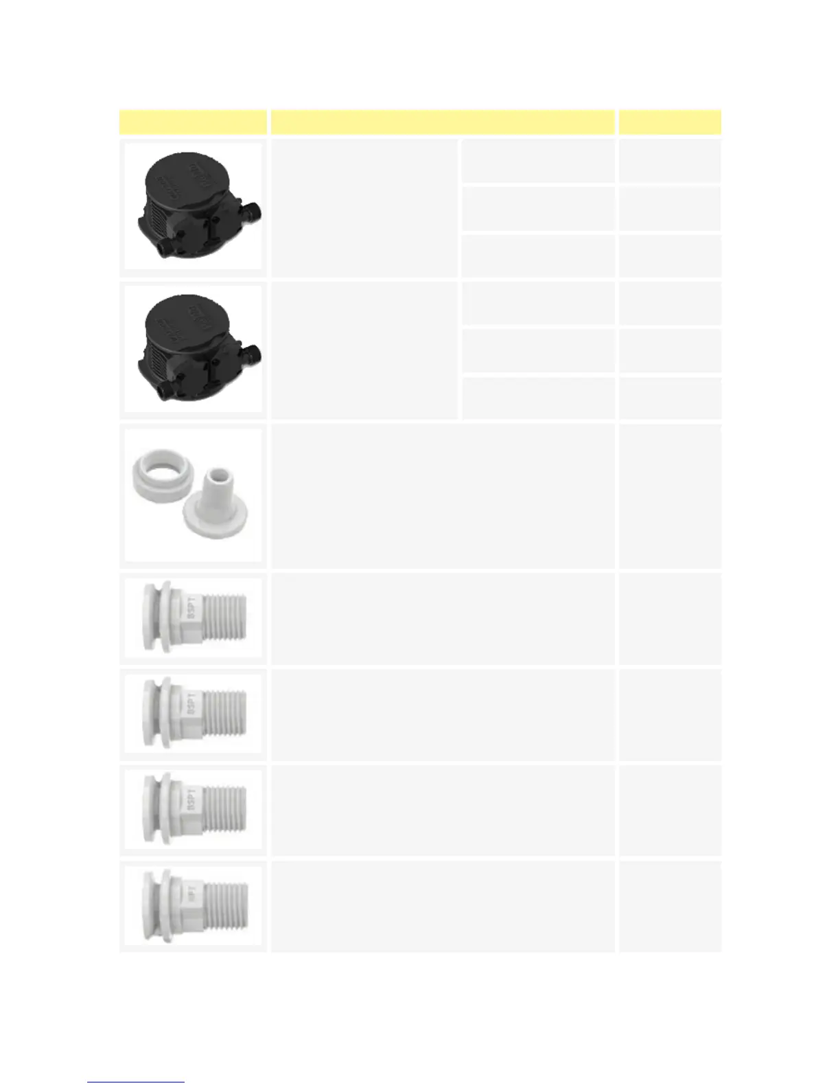 fittings, 1/4” hose barb, 3/8” hose barb, 1/4” BSP, 1/4” NPT