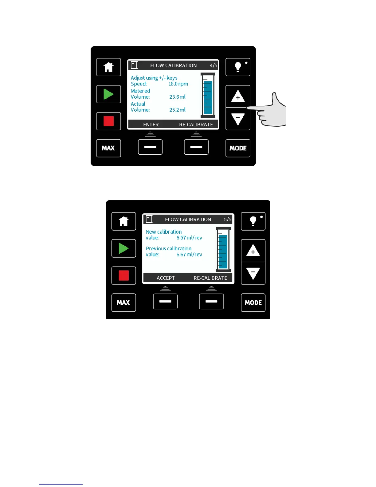To accept the new calibration press ACCEPT or RECALIBRATE to repeat the procedure.