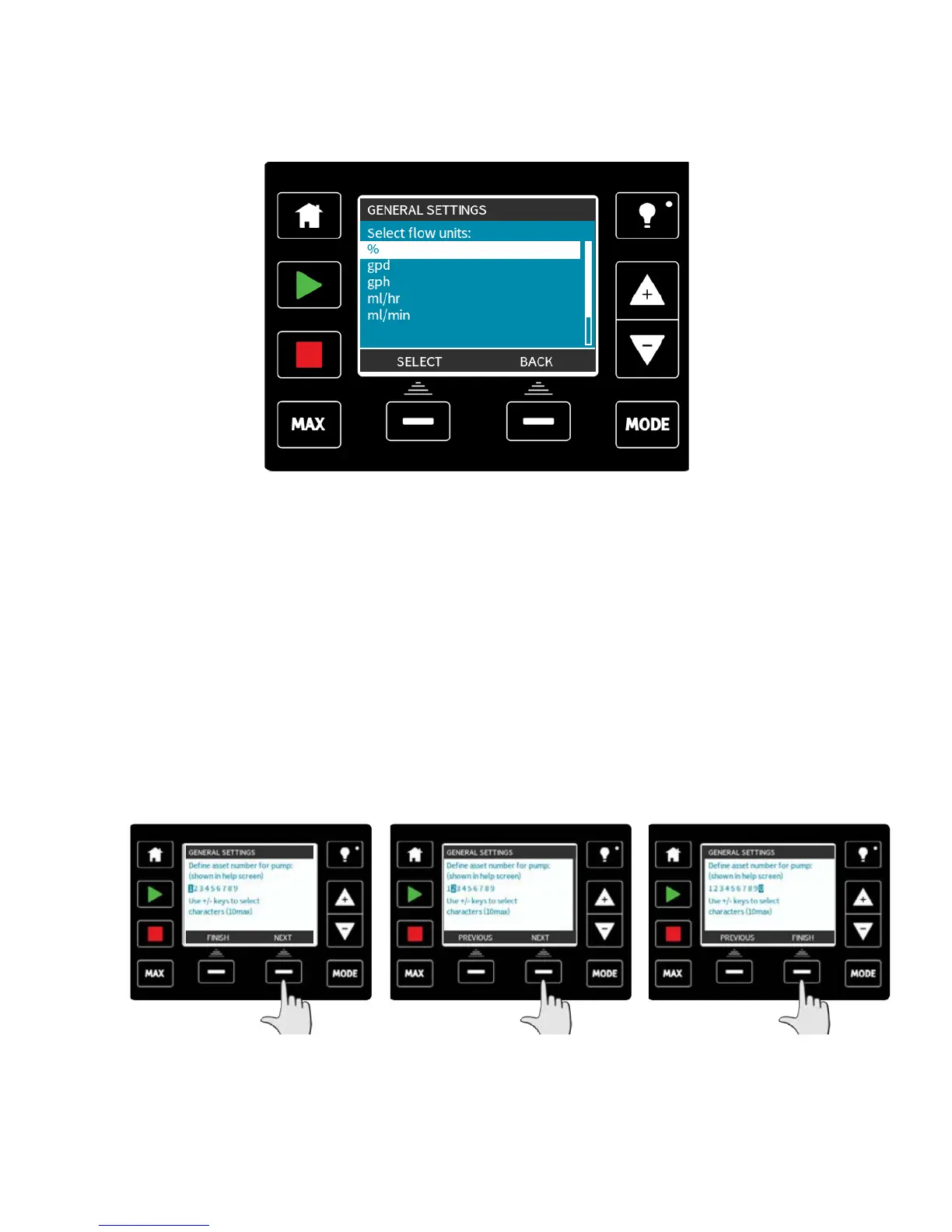 Press SELECT to define the flow units to use. All flow rates displayed on screens will now