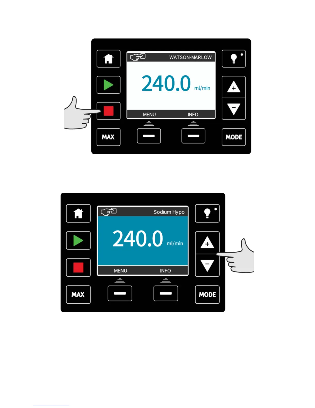 l A single key press will decrease flowrate by the least significant digit of the chosen