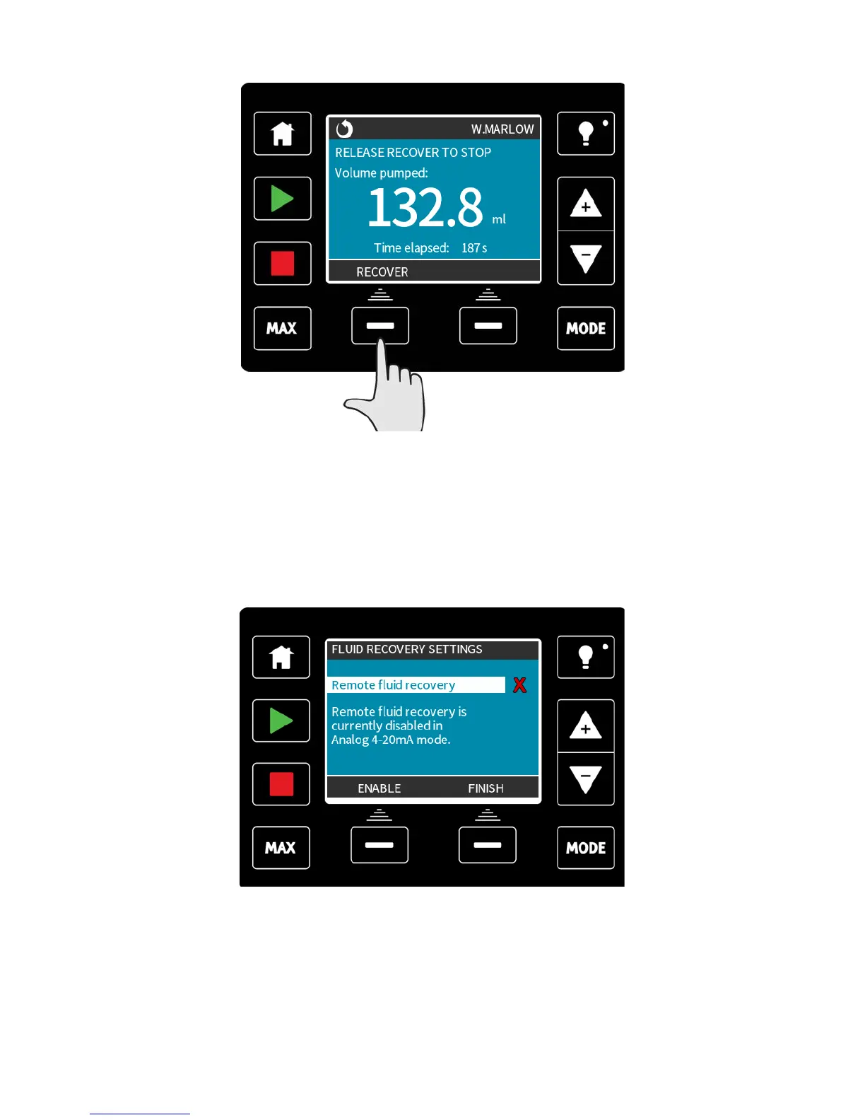 20mA mode. To achieve this, it is necessary to enable remote fluid recovery functionality.