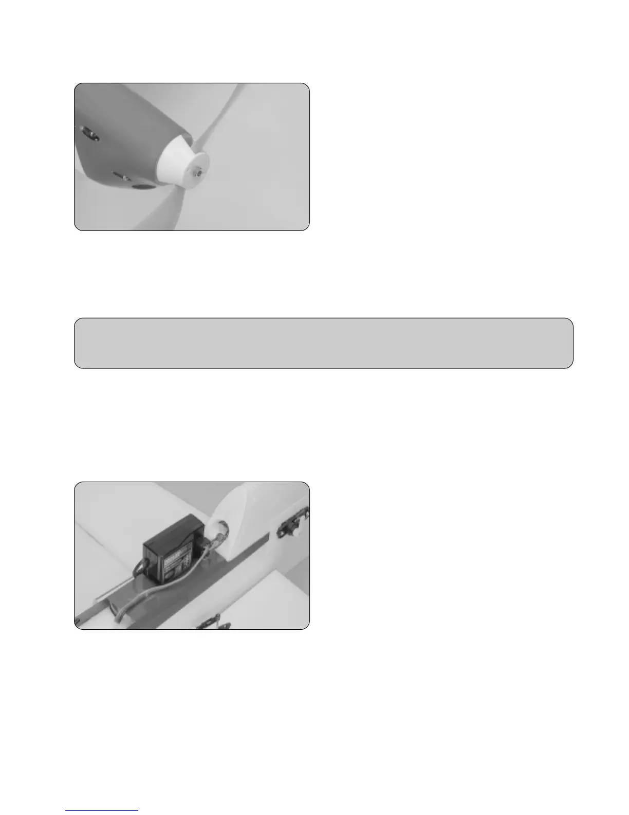 ❑ Mount the receiver on top of the plastic fuselage top deck