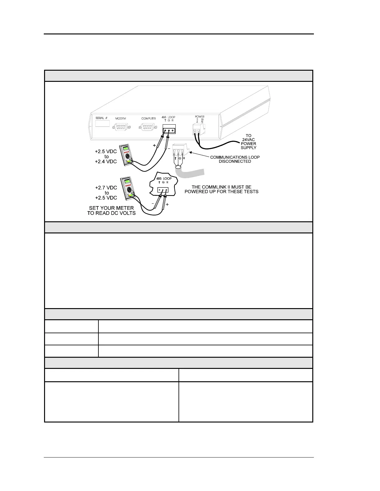 This test checks for proper Network loop voltages coming from the CommLink II.