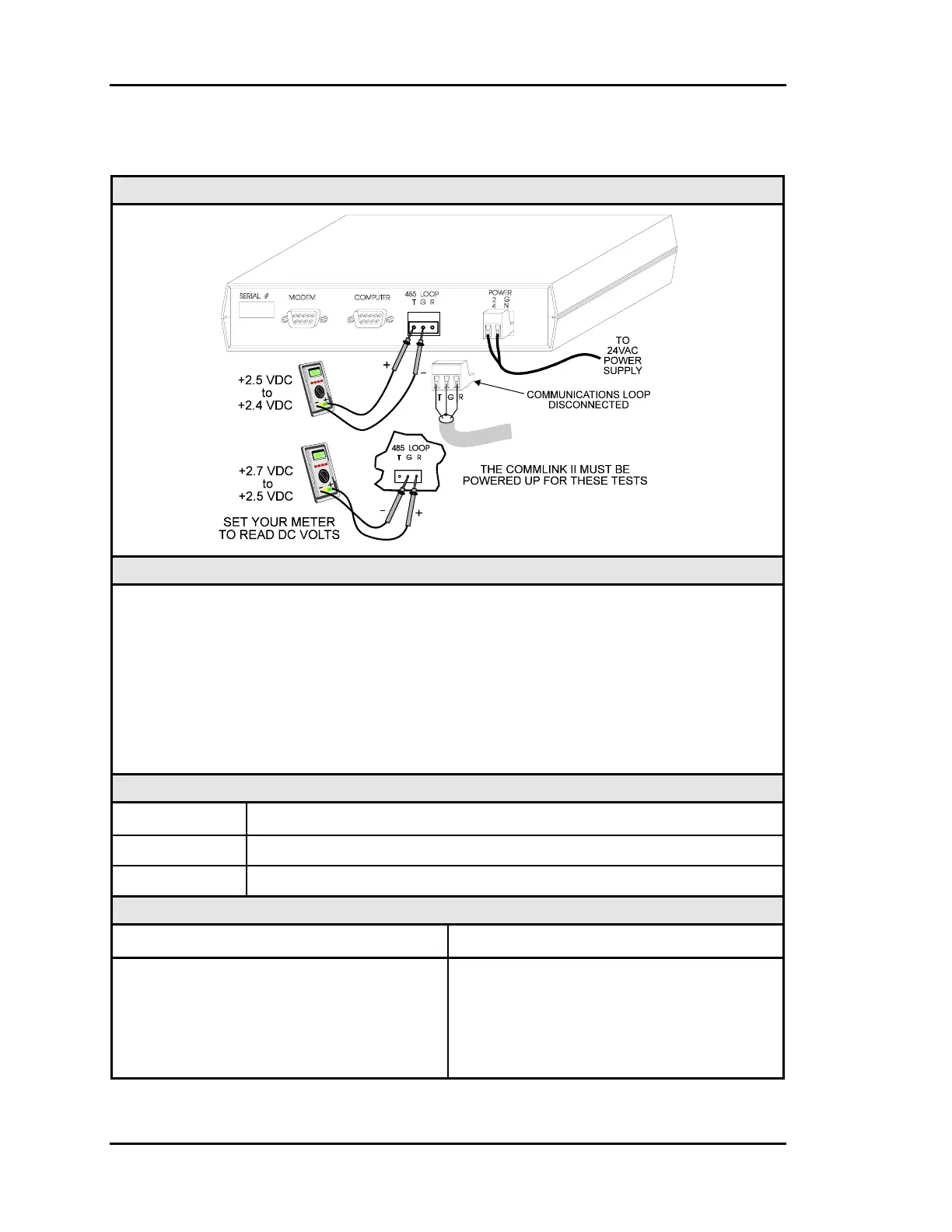 This test checks for proper Network loop voltages coming from the CommLink II.