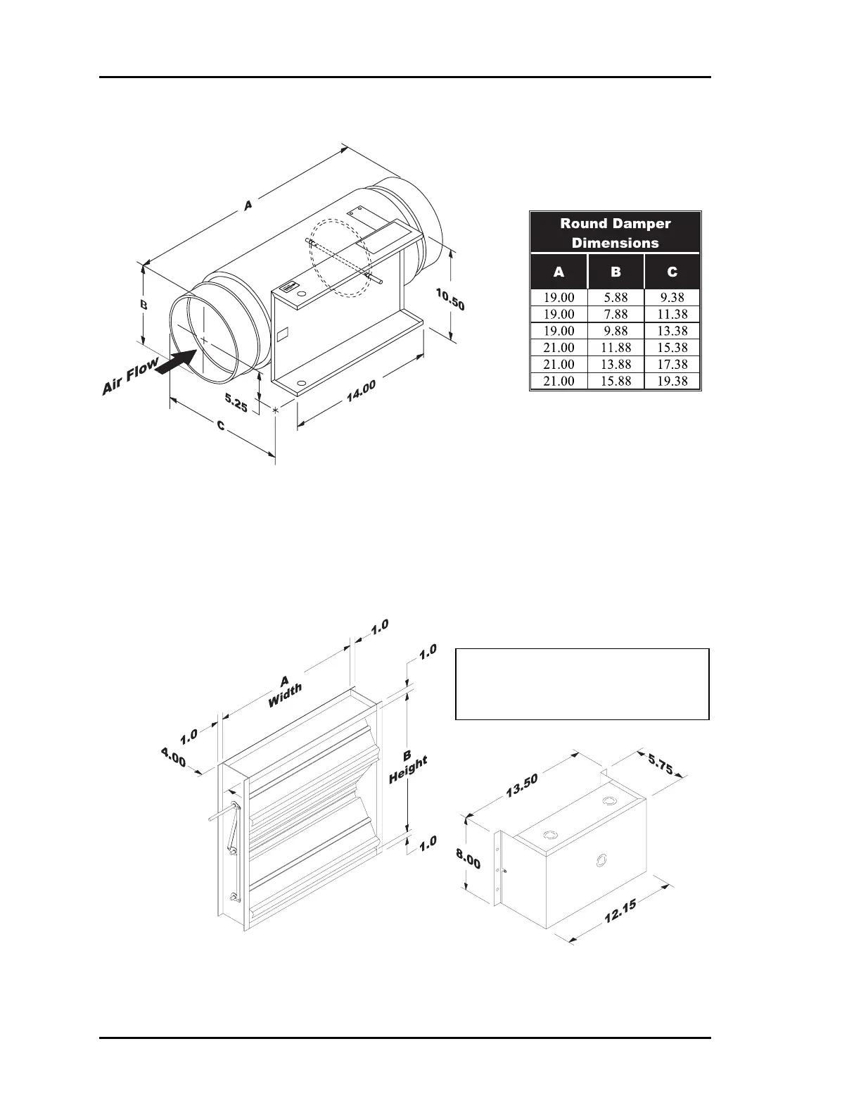 WattMaster Auto-Zone Plus - Figure 1-4: Round Damper Dimensions; Figure 1-5: Rectangular Damper Dimensions