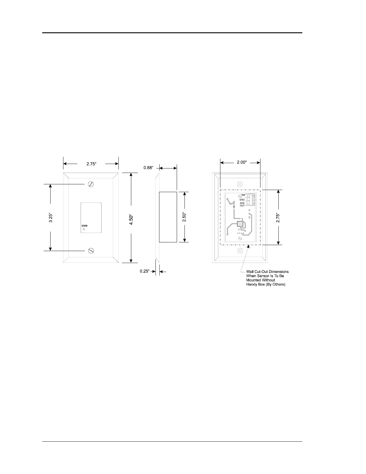 Sensor is designed to mount vertically in a standard 2 by 4 inch electrical box. The sensor
