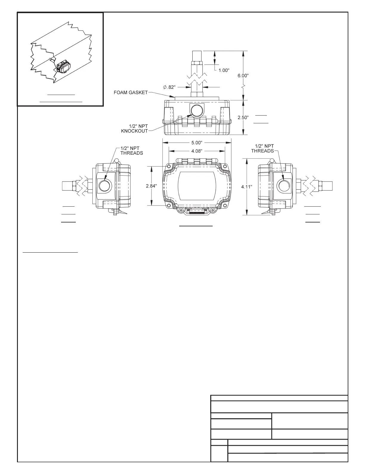 1.) Drill a 1" Diameter Hole In The Duct Wall In the Location Where The Humidity Sensor Is To Be Mounted. Insert The Probe Of The Return Air Humidity