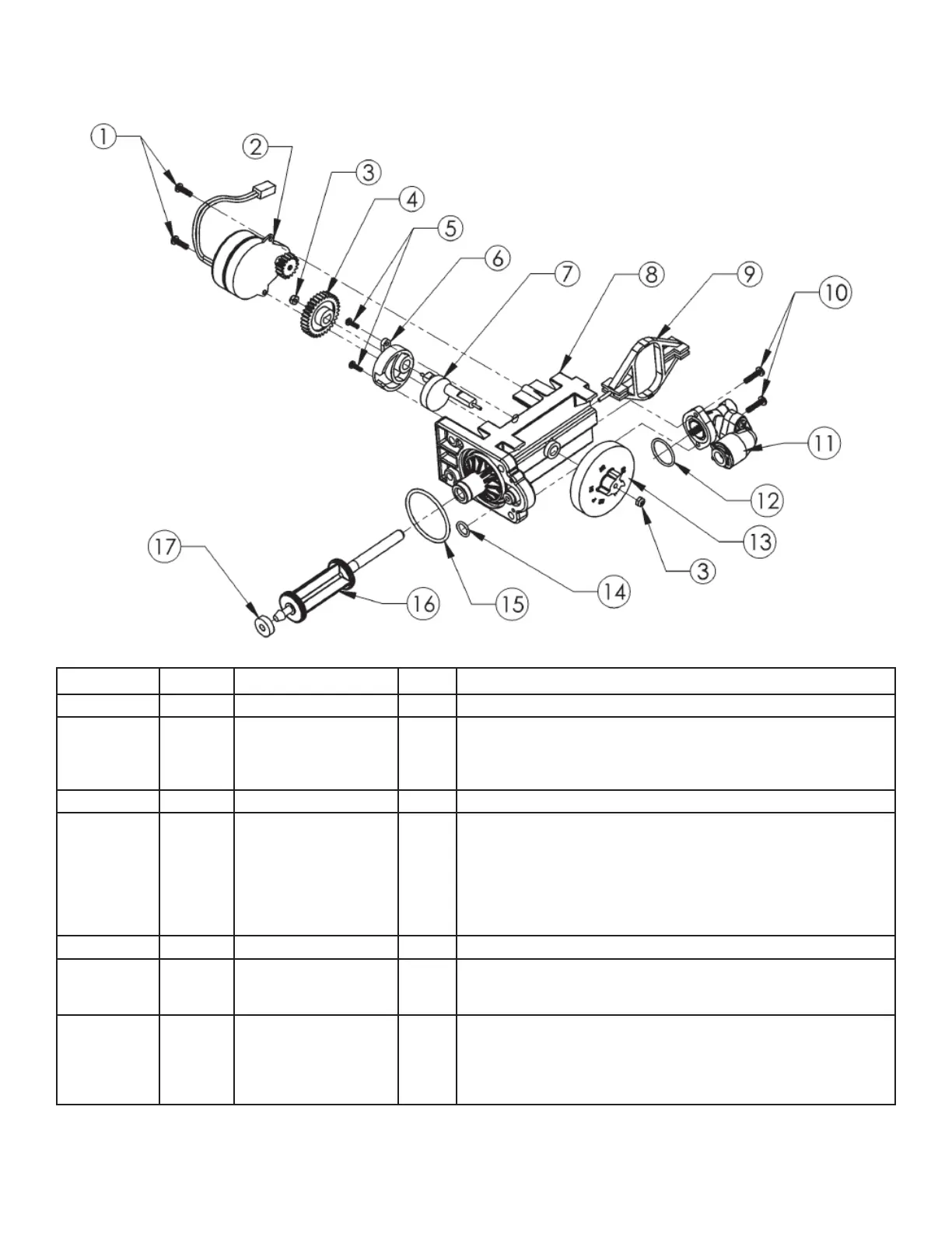 1 90802 Screw Secures motor to endcap assembly.
