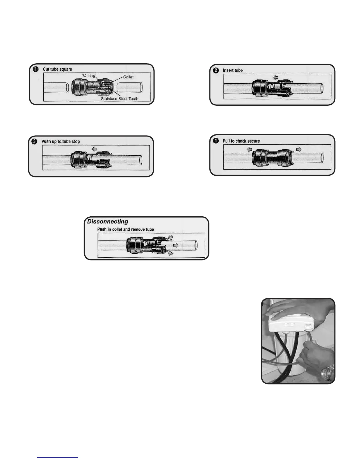 of fitting. With the collet held in this position, the tube can