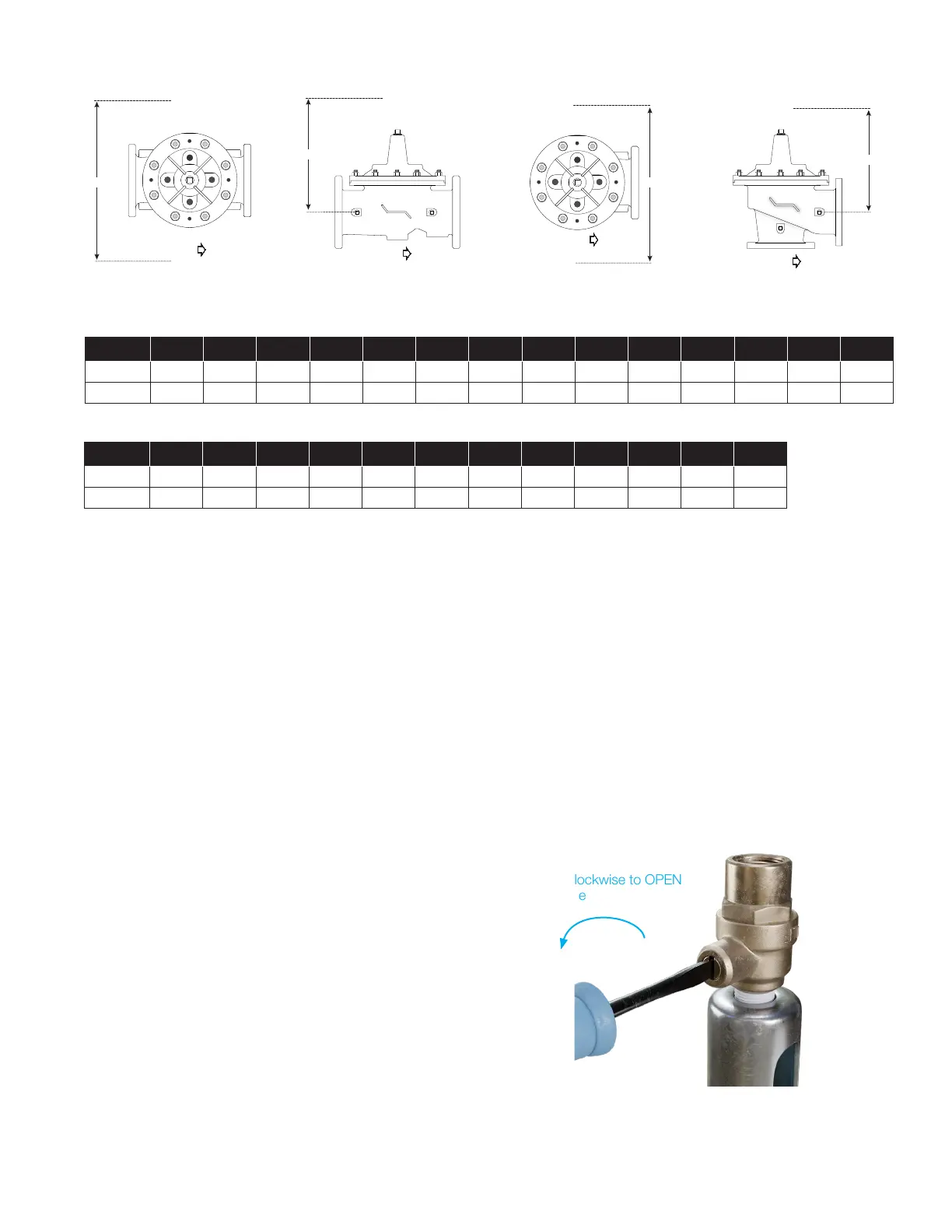 Pressure Reducing – adjust OUT, counterclockwise, backing pressure off the spring, preventing possible over-pressurizing of the