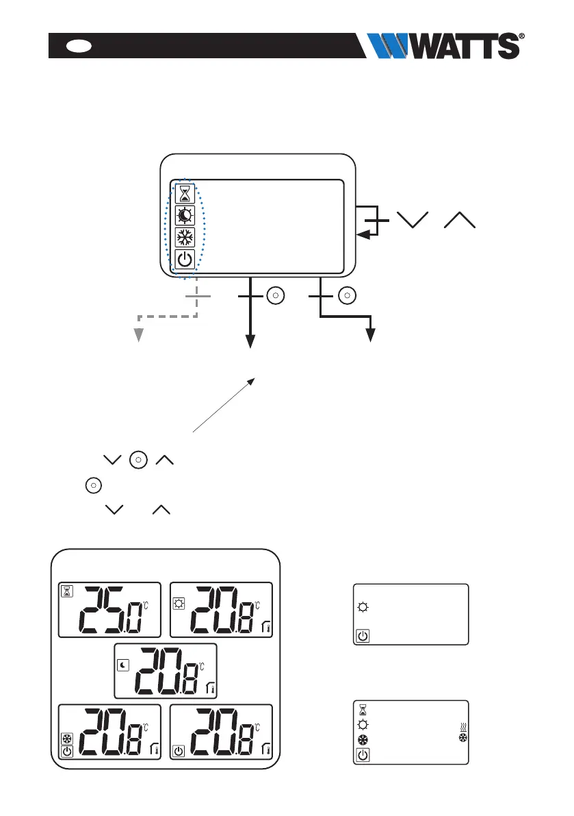 Trykk på hvilken som helst tast for å vekke termostaten og aktivere motlyset.