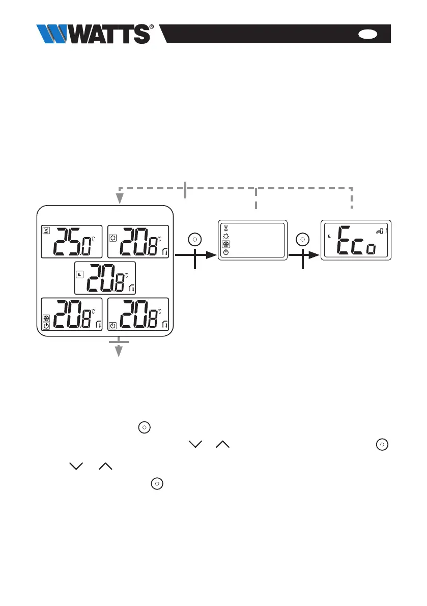Trykk på en hvilken som helst tast for å vekke termostaten og aktivere motlyset.