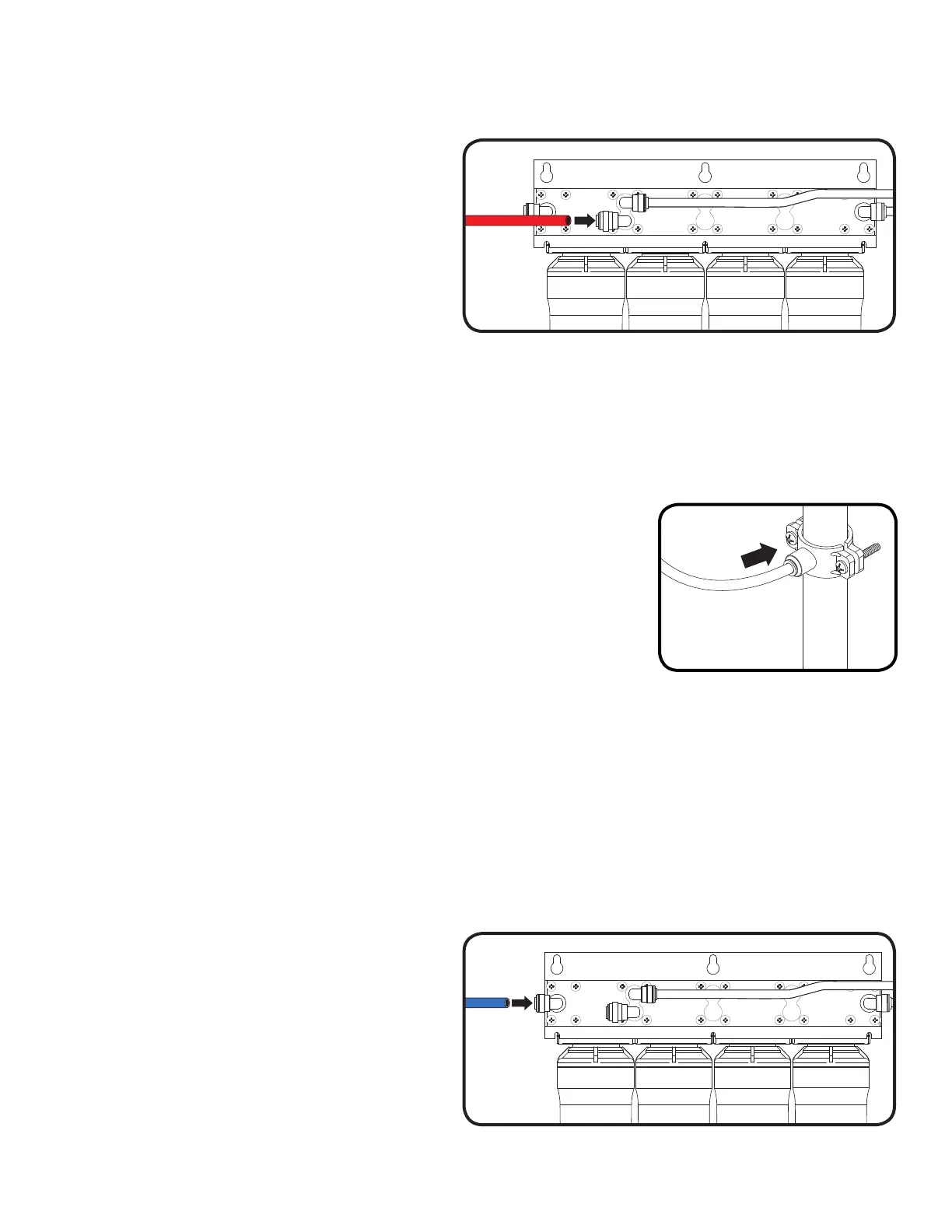 In the parts bag locate blue 1/4” tube. Connect one open end of the tube to the RO faucet.