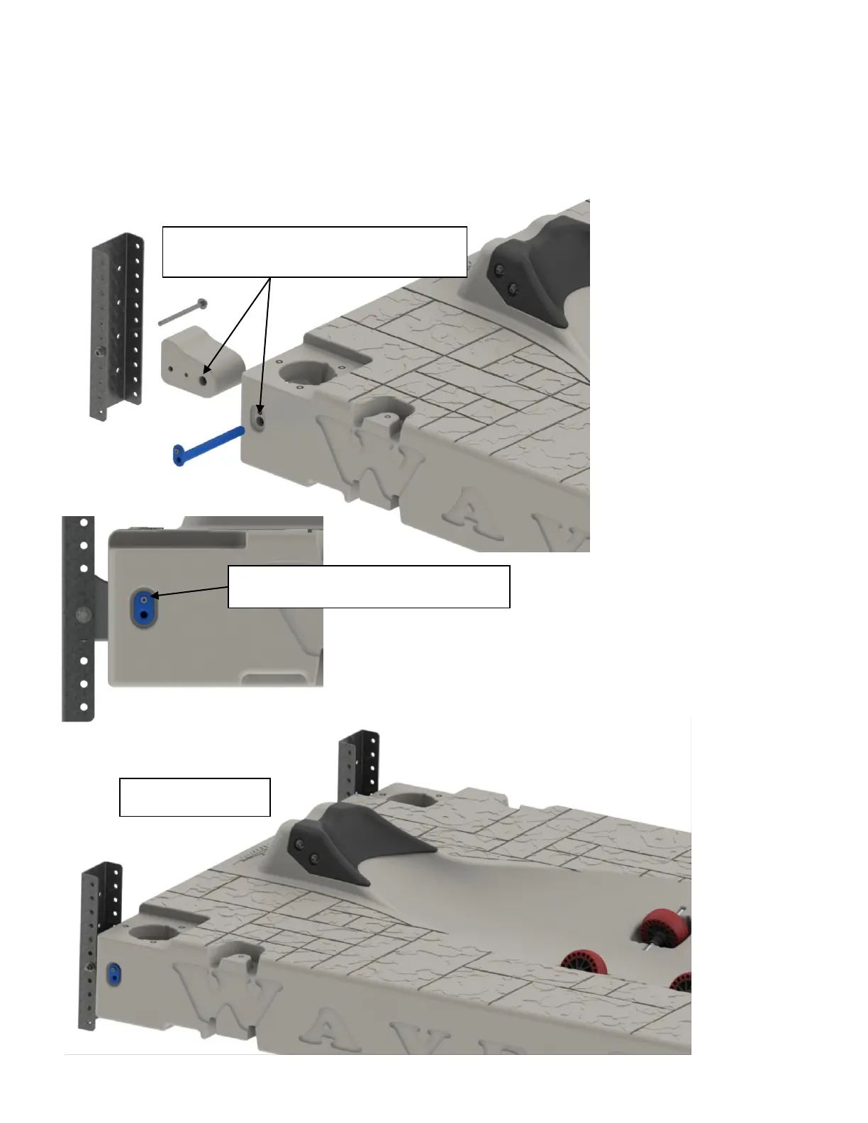 Push blue connecting pin through these