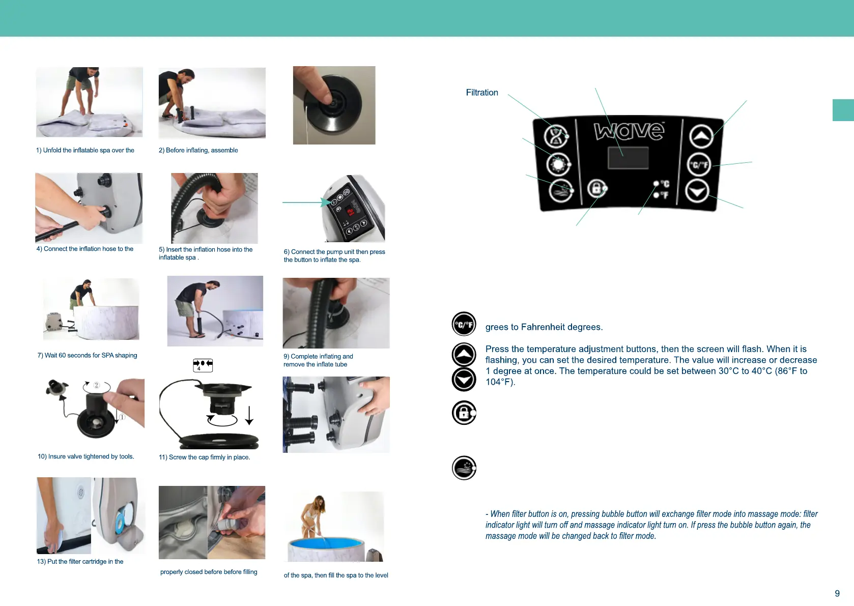 - The massage system will stop automatically after 30 minutes of operation. Re-activate the mas-