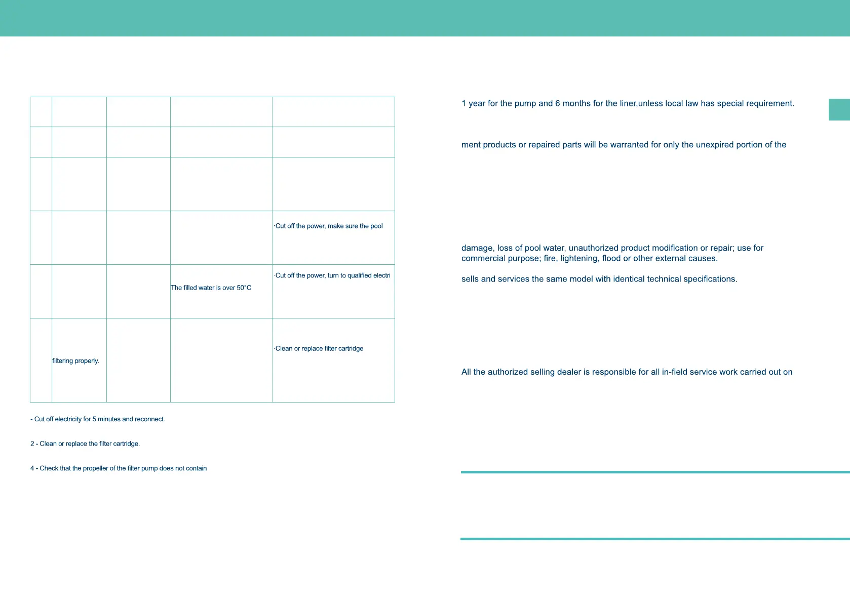 purchase, serial number, spa model are indicated. Without these information the warranty