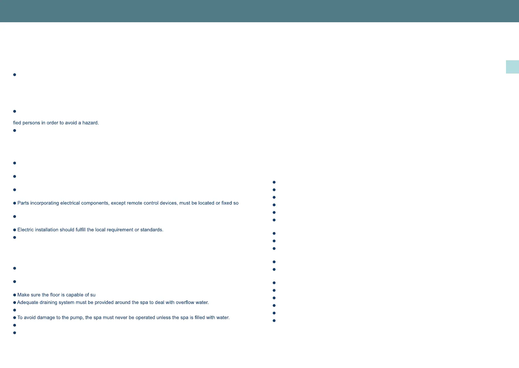The spa electrical appliance should be supplied through a residual current device (RCD) having a rated