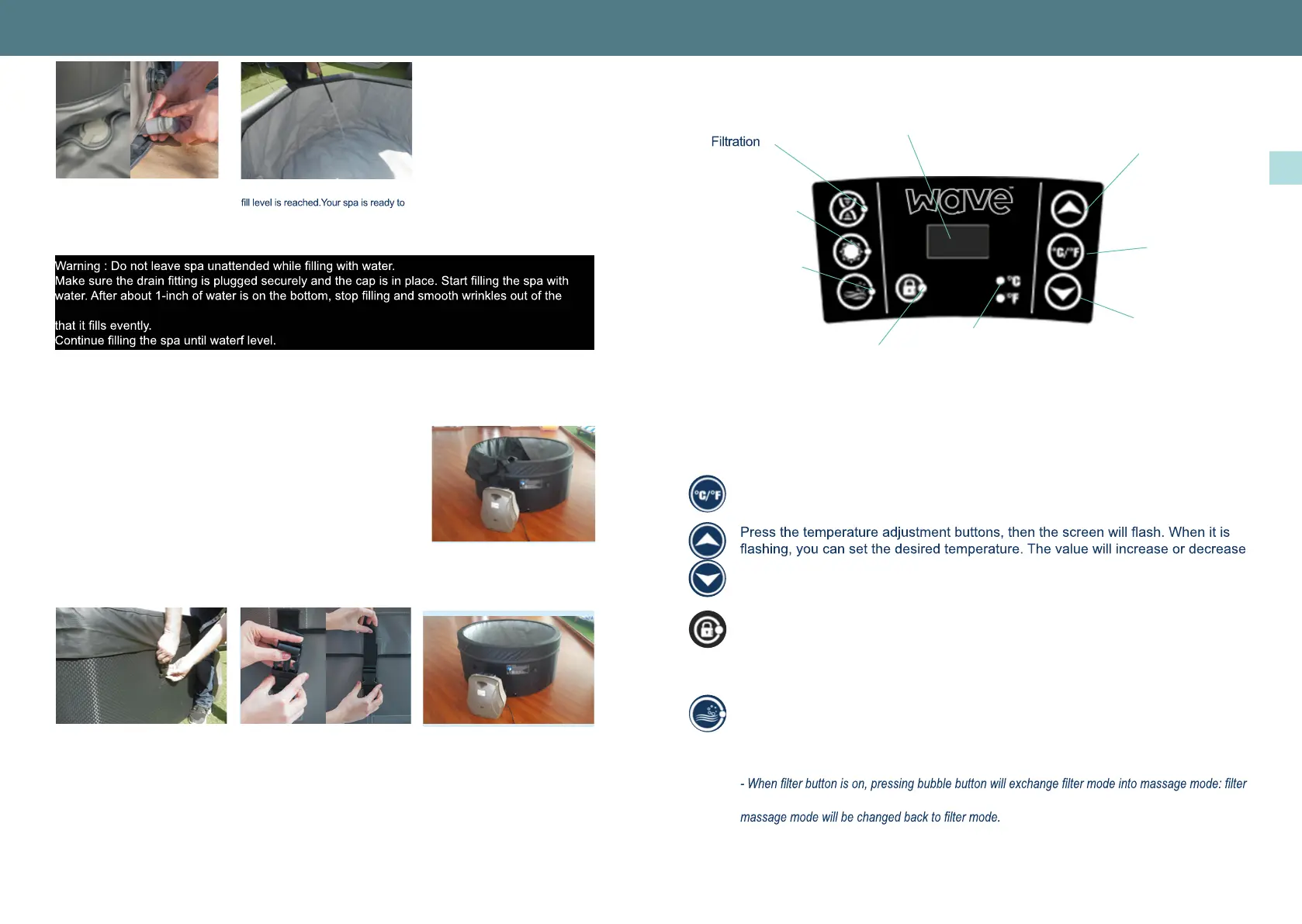 14) Fill the spa pool until the indicated