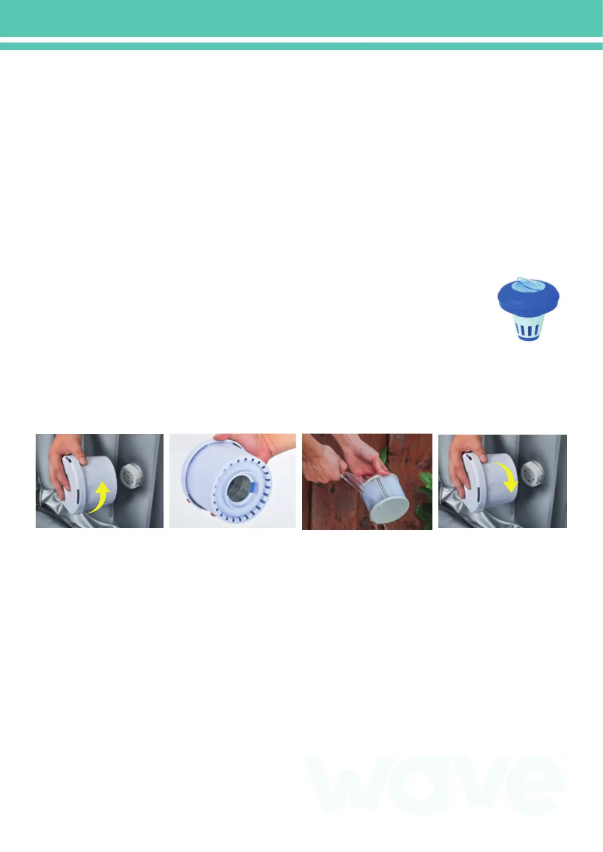 To sanitize the pool water, we suggest using an active oxygen-based treatment or bromine placed in a