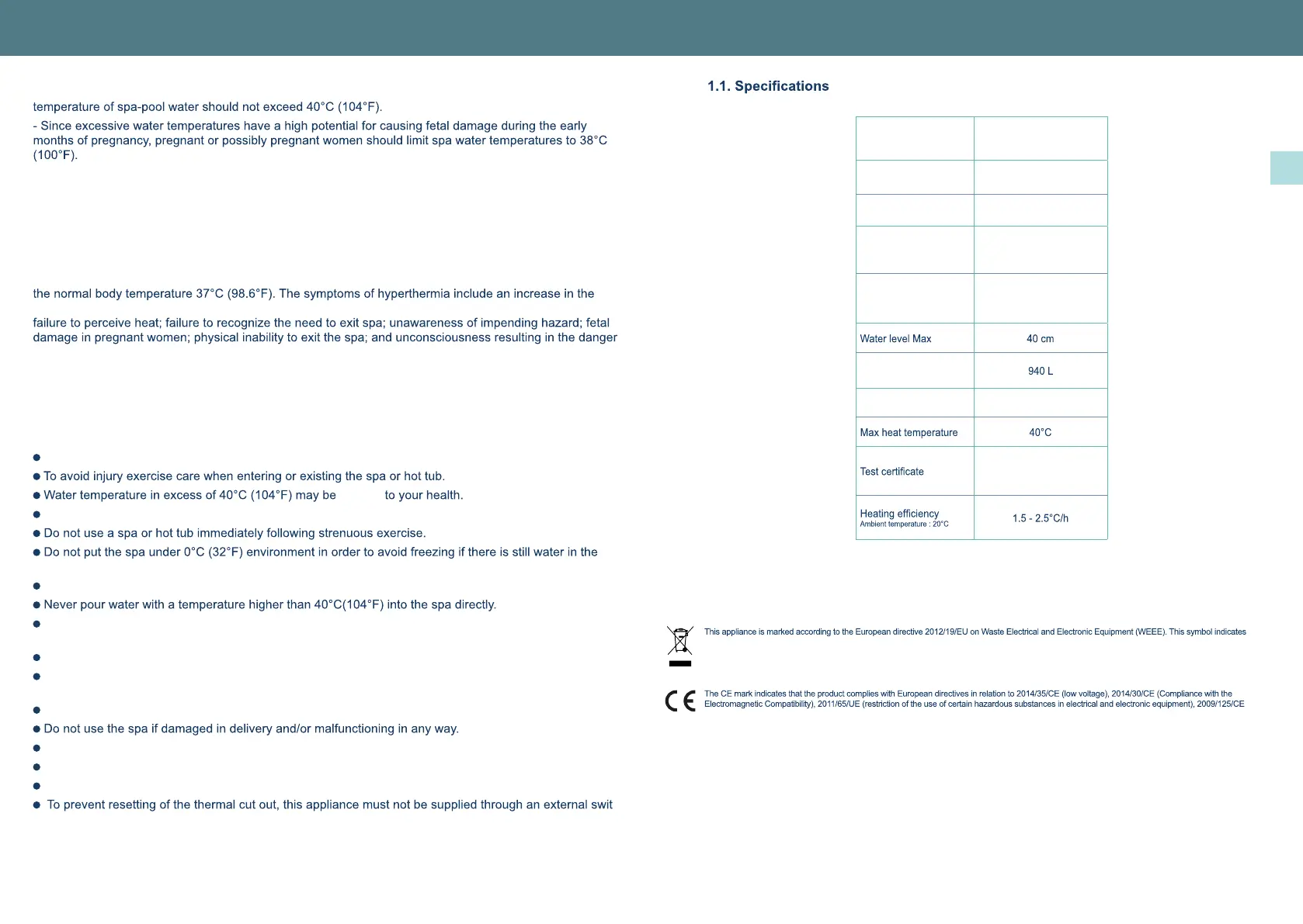 - Before entering a spa or hot tub the user should measure the water temperature with an accurate ther-
