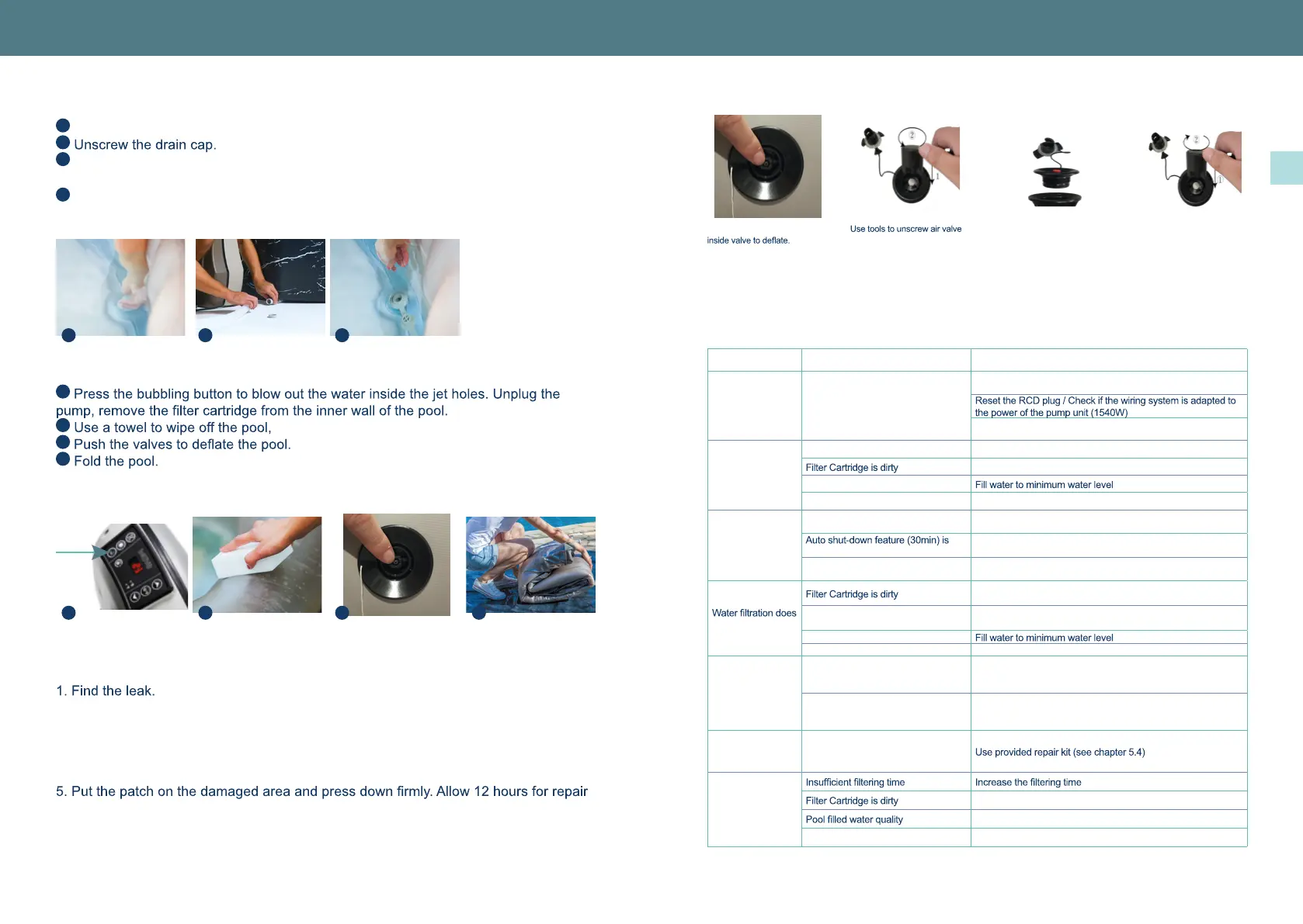 Spa pool leakage Spa pool is torn or punctured