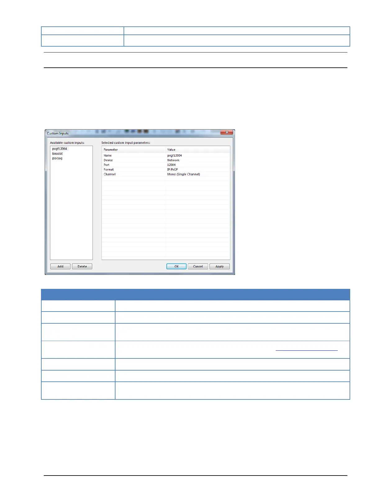 To use a TCP/IP stream as signal input source, the following parameters have to be set via the Custom