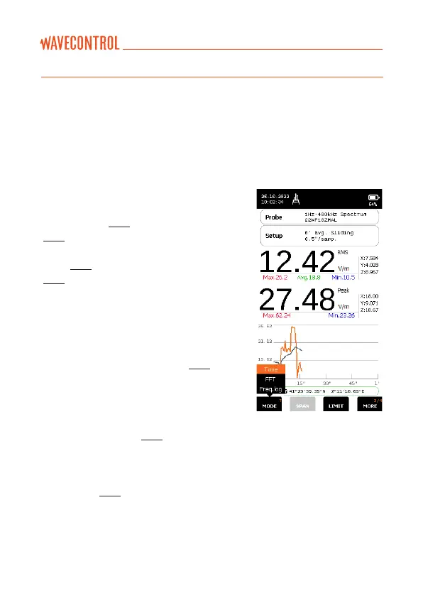 • FFT: Frequency mode. The main screen