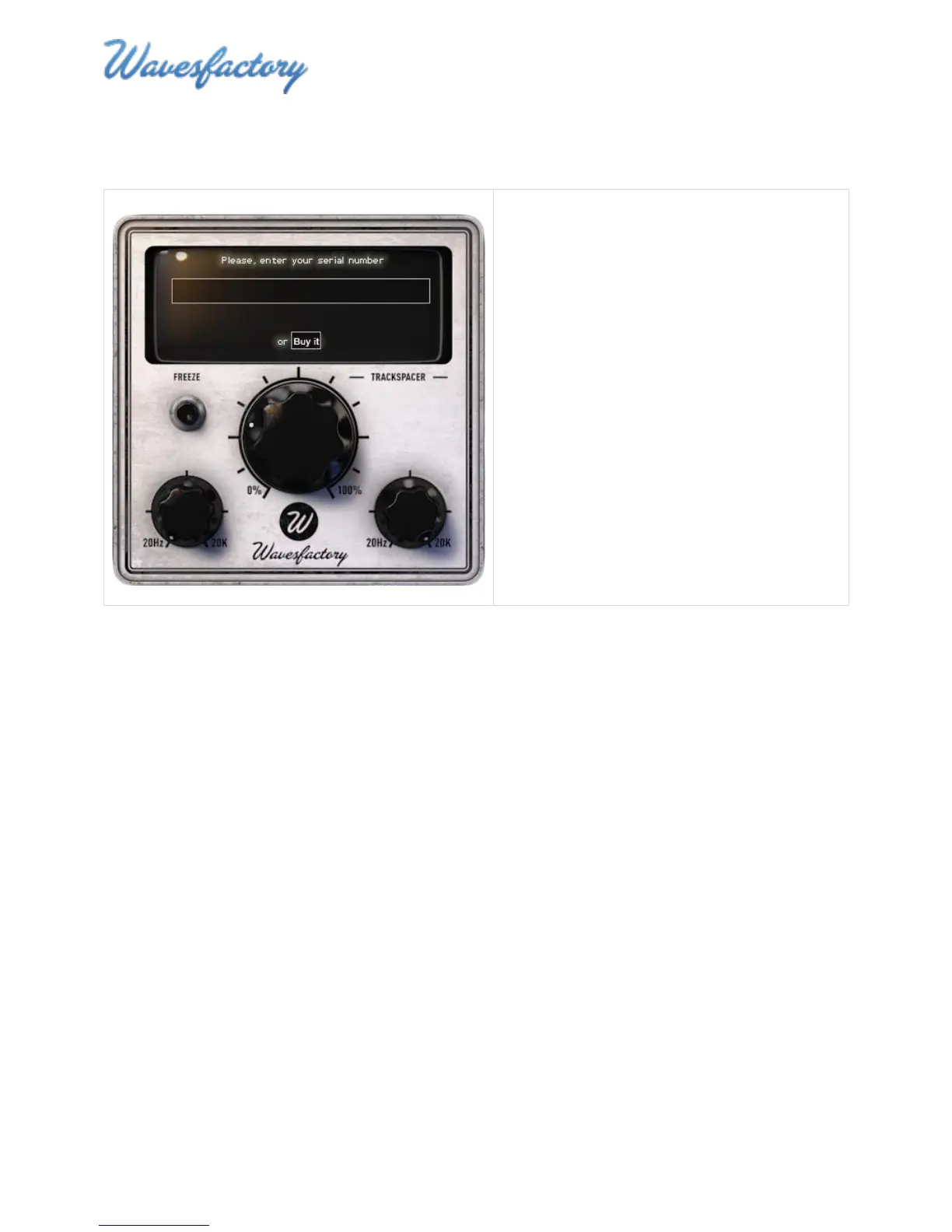 You will be prompted to enter a serial number the first time you insert TrackSpacer into a channel.