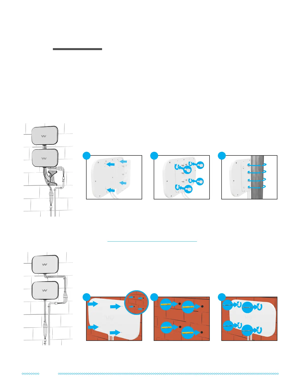 Your QuadMini Duo offers two permanent outdoor mounting options: pole or wall mounting.
