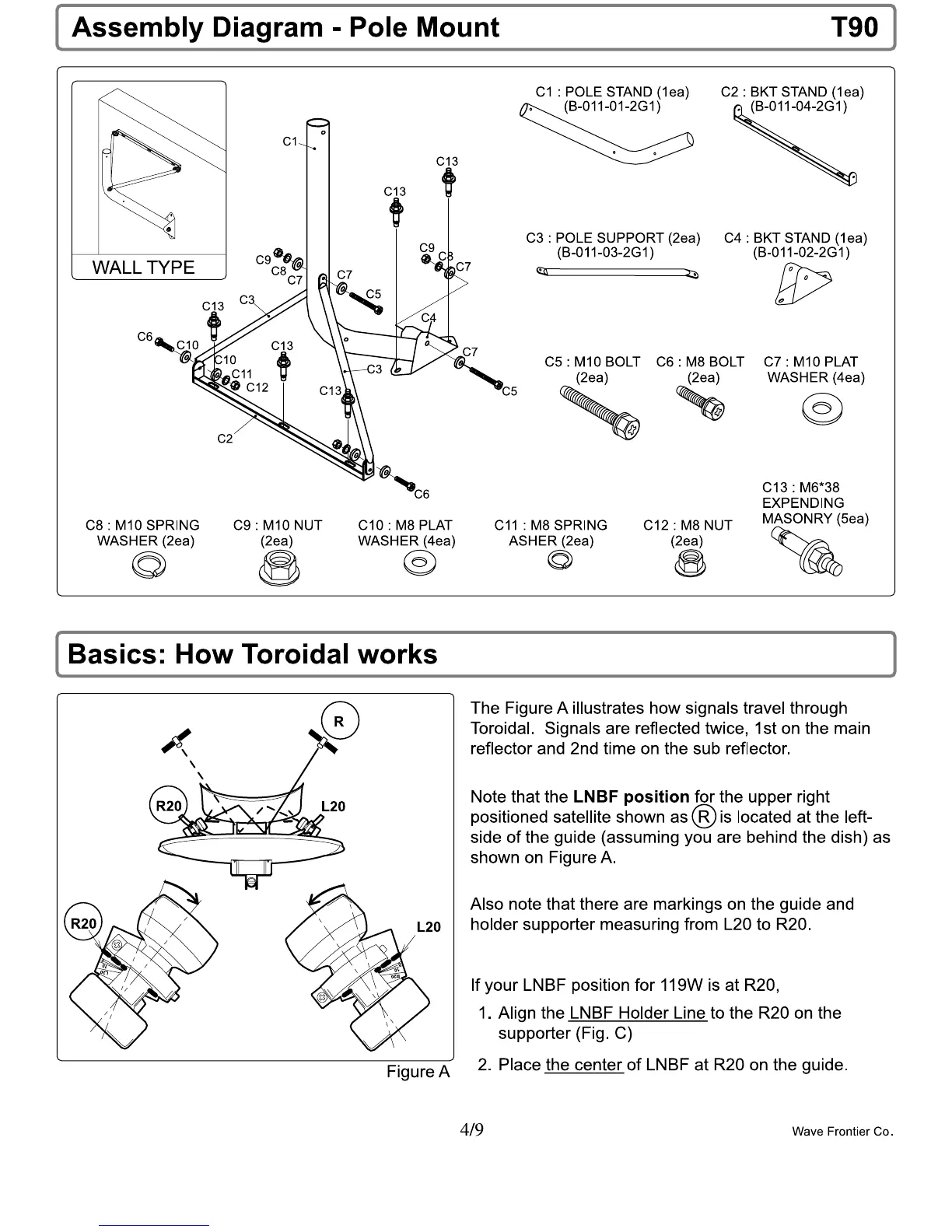 WaveFrontier Toroidal 90 - Pole Mount Assembly and Toroidal Basics; Assembly Diagram - Pole Mount; Basics: How Toroidal works