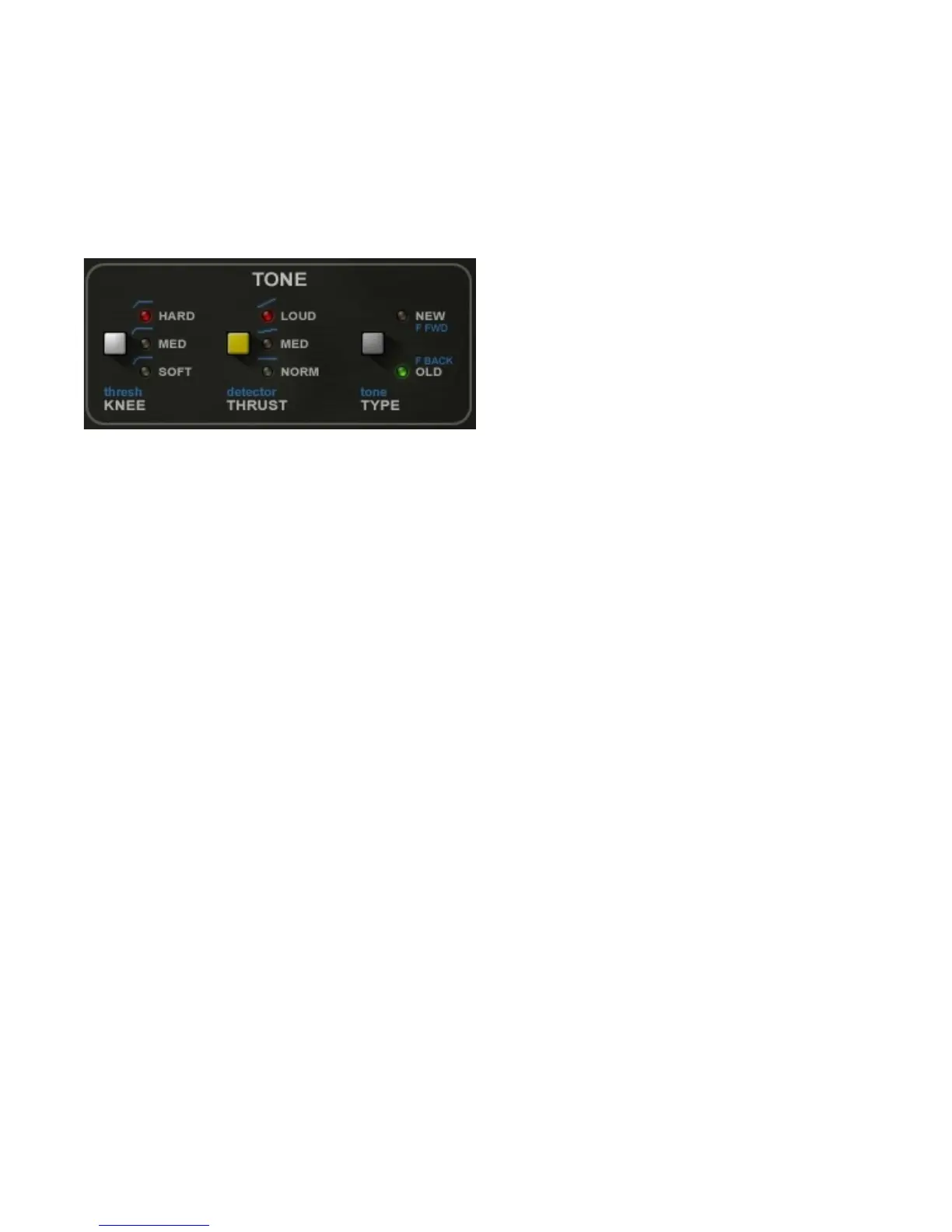 Sets the Thrust, a proprietary process that inserts a High Pass Filter at the RMS detector input, limiting