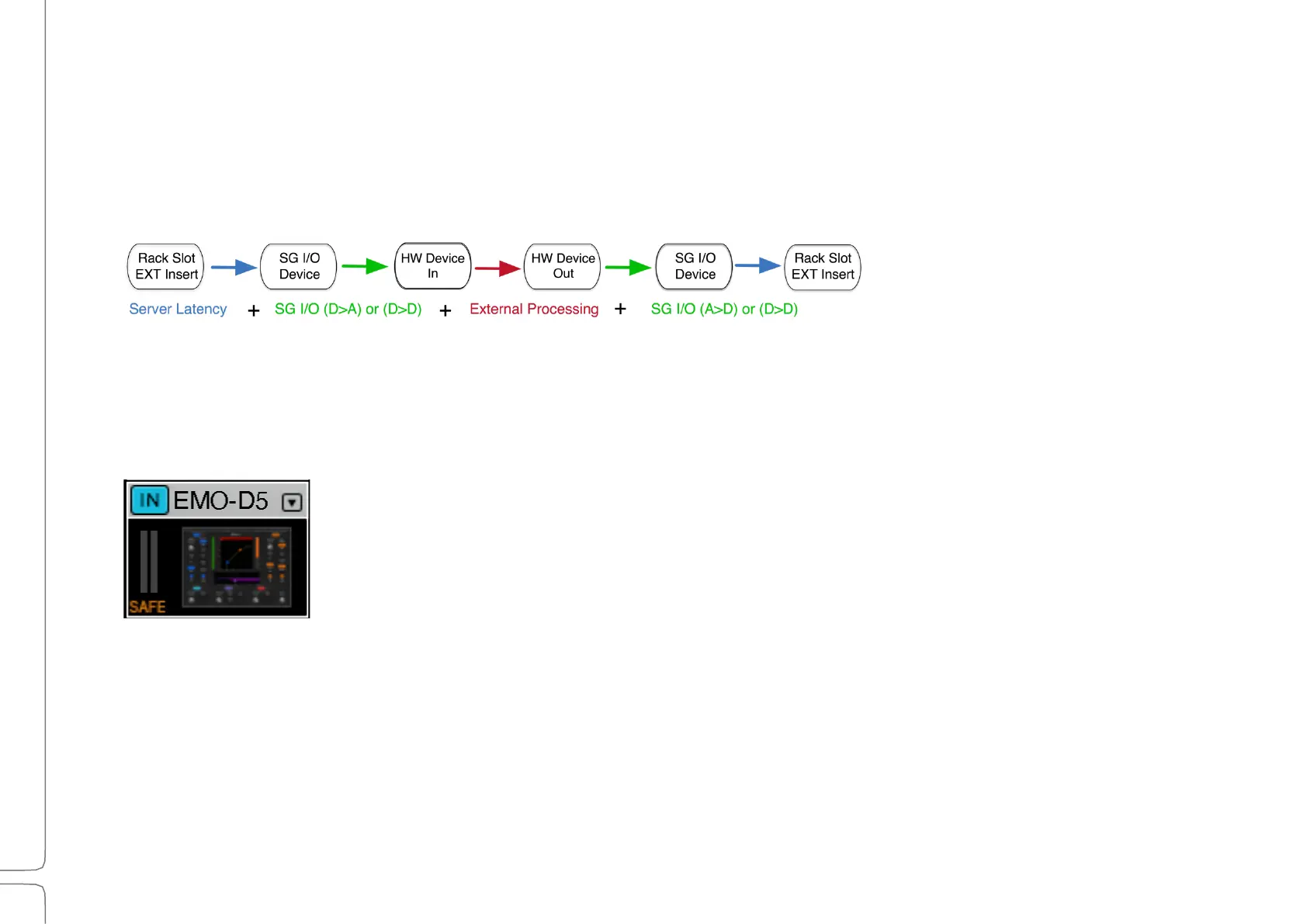 An external insert is sent to and from an external device, via one or more SoundGrid I/O devices.