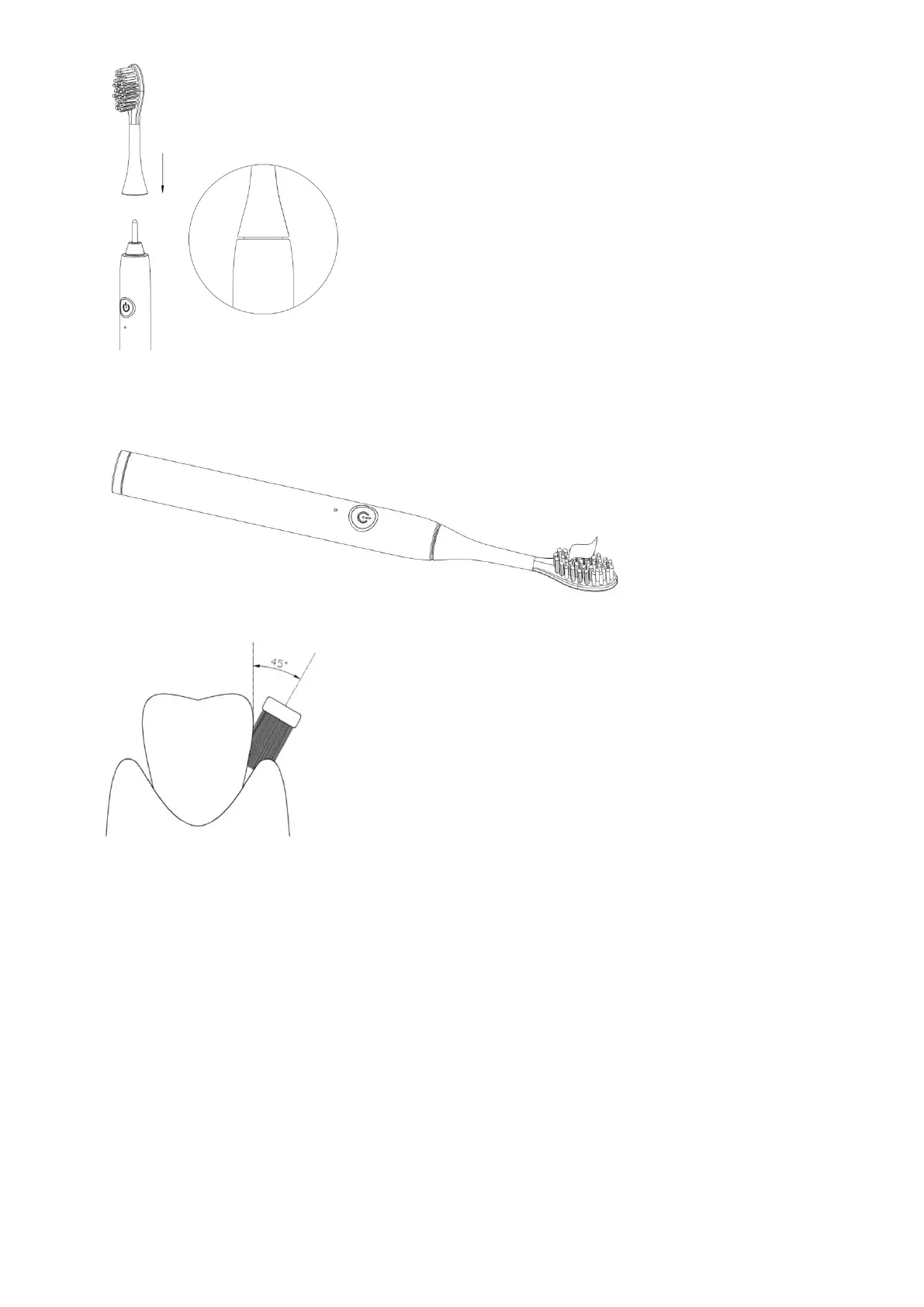 2. Introduzca el cepillo en la boca y coloque el cabezal entre el diente y la encía.