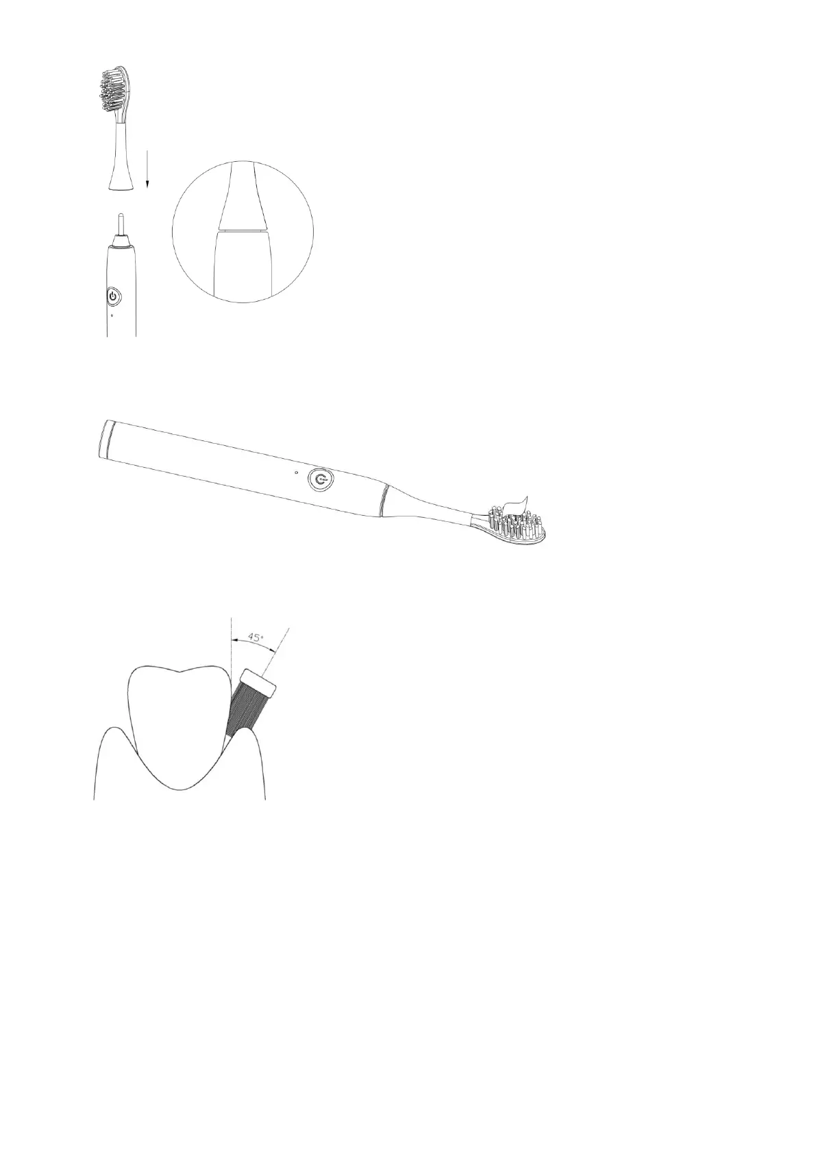 3. Prima o interruptor para ligar a escova de dentes. A escova de dentes começa a funcionar do seguinte