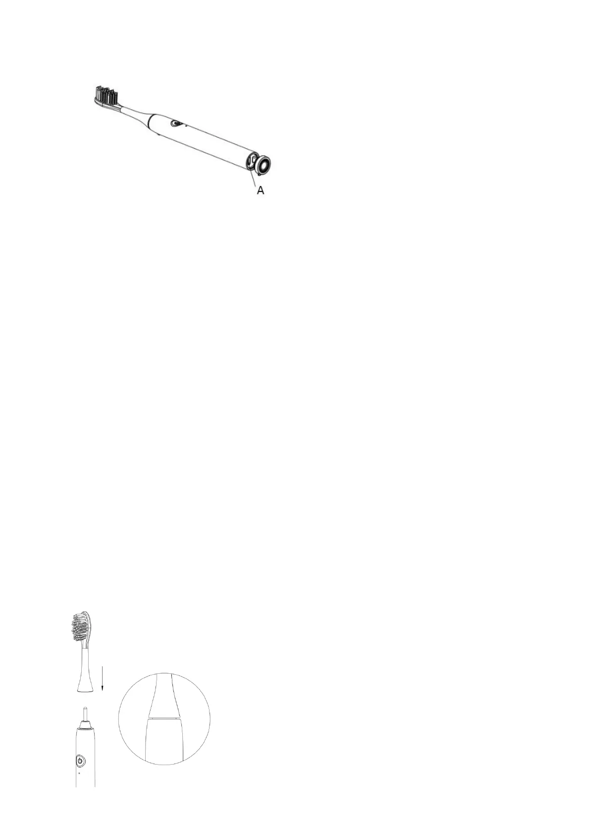 Aliniați capul periuței de dinți cu mânerul prezentat ca mai jos, apoi împingeți capul periuței de dinți în jos