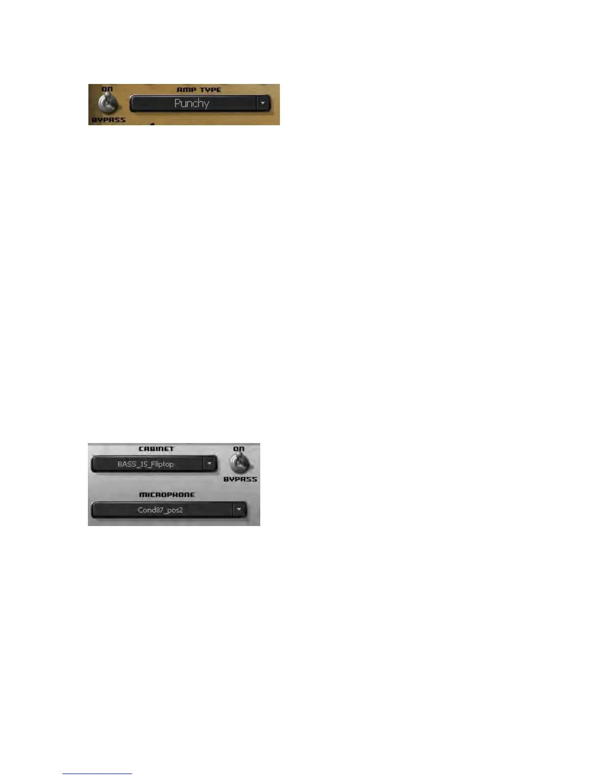 AMP controls Amp activation/bypass. When set to Bypass, input is routed directly