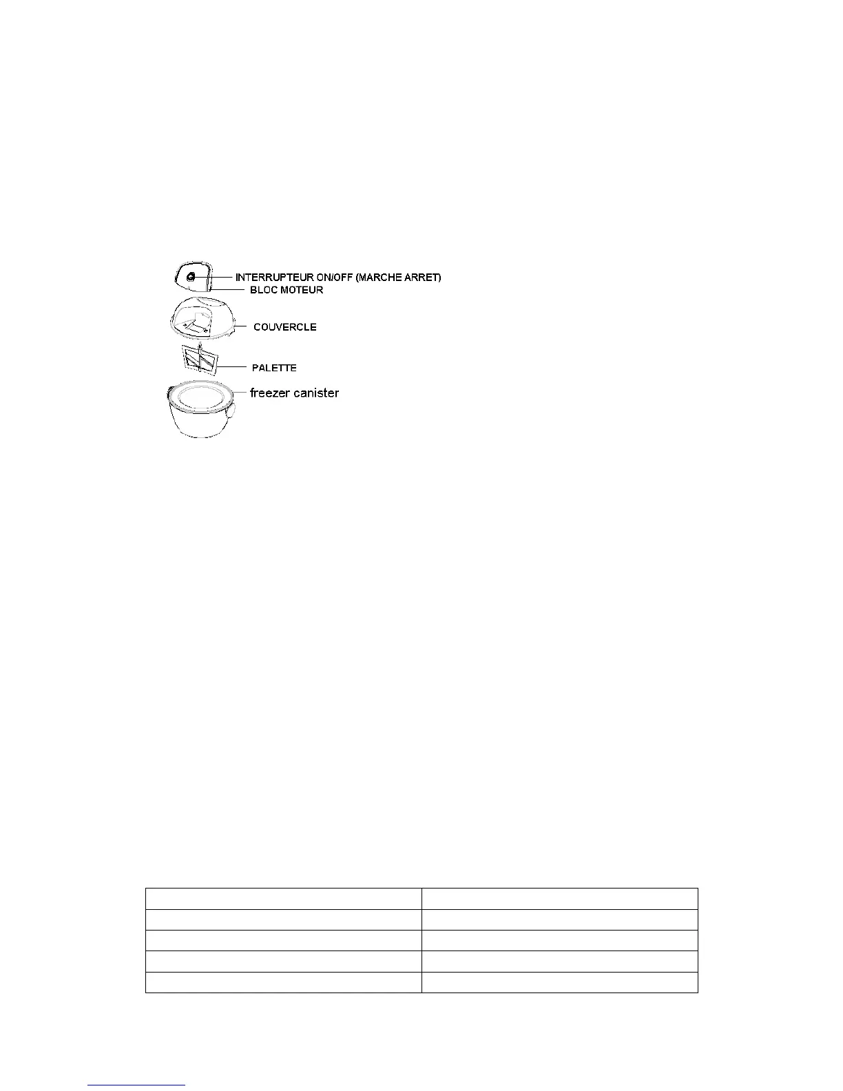 sorbetière. Lavez le bac à congeler, le couvercle et la palette dans de l’eau chaude et