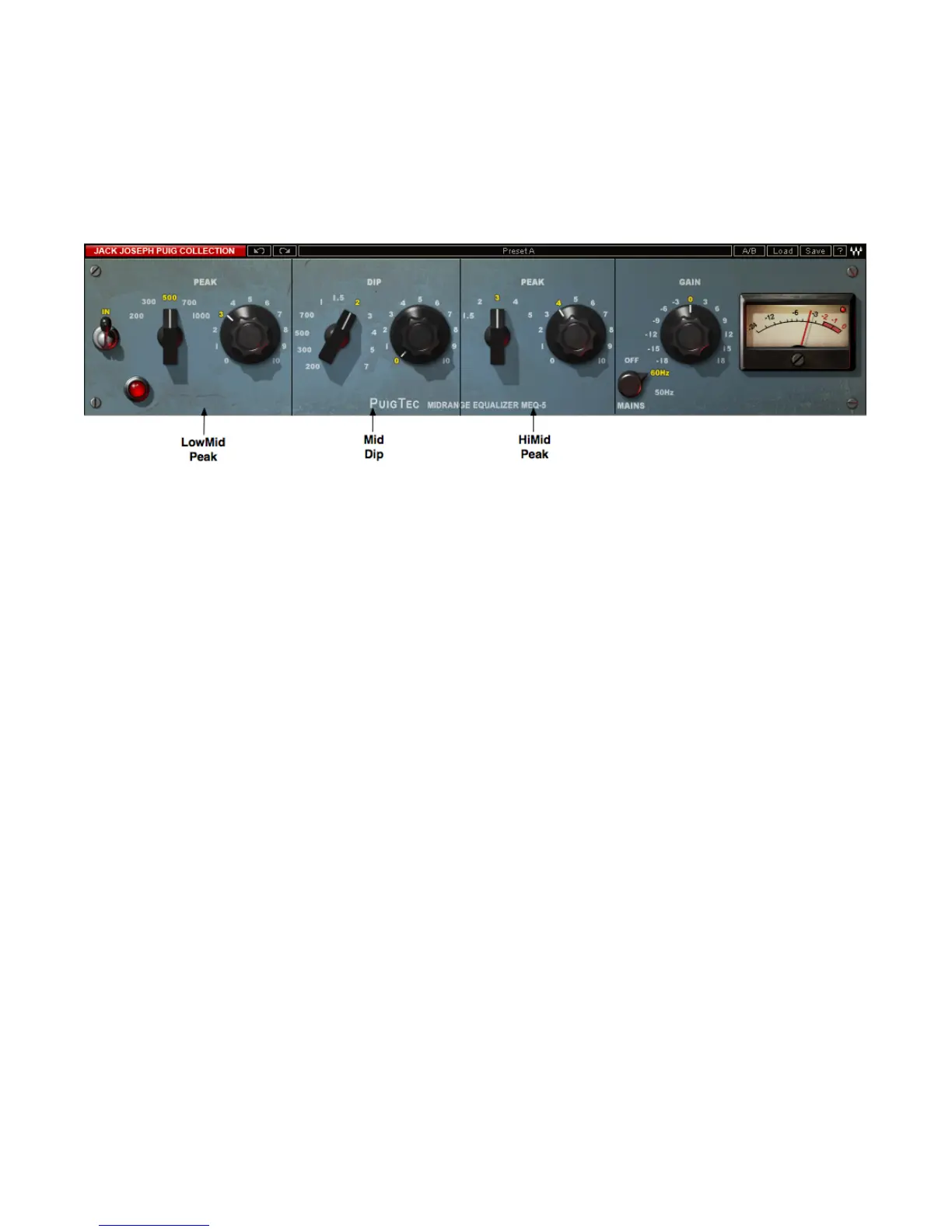 • The Mid Dip band offers 11 cutoff points and amount of 10dB Dip (attenuation).