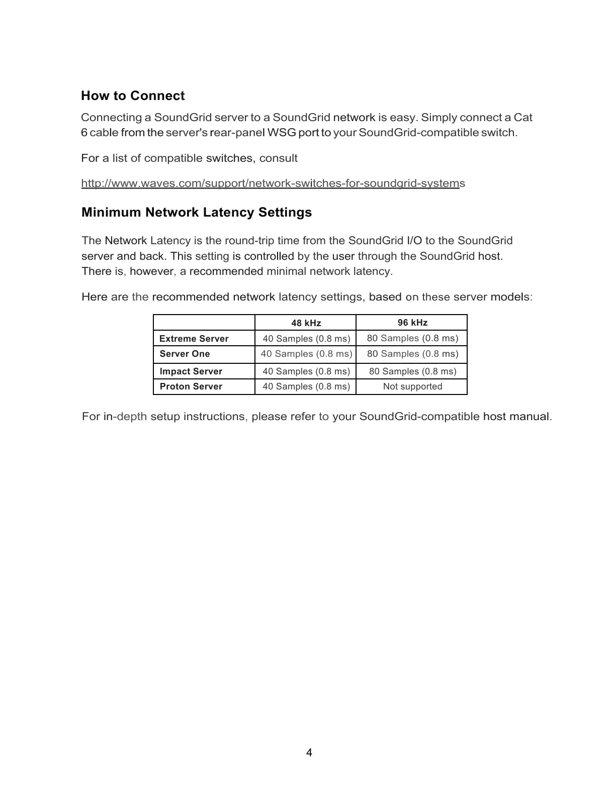 6 cable from the server's rear-panel WSG port to your SoundGrid-compatible switch.