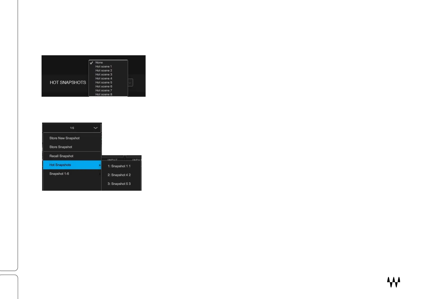 Hot Snapshots are recalled from the Snapshots menu on the Top Bar.