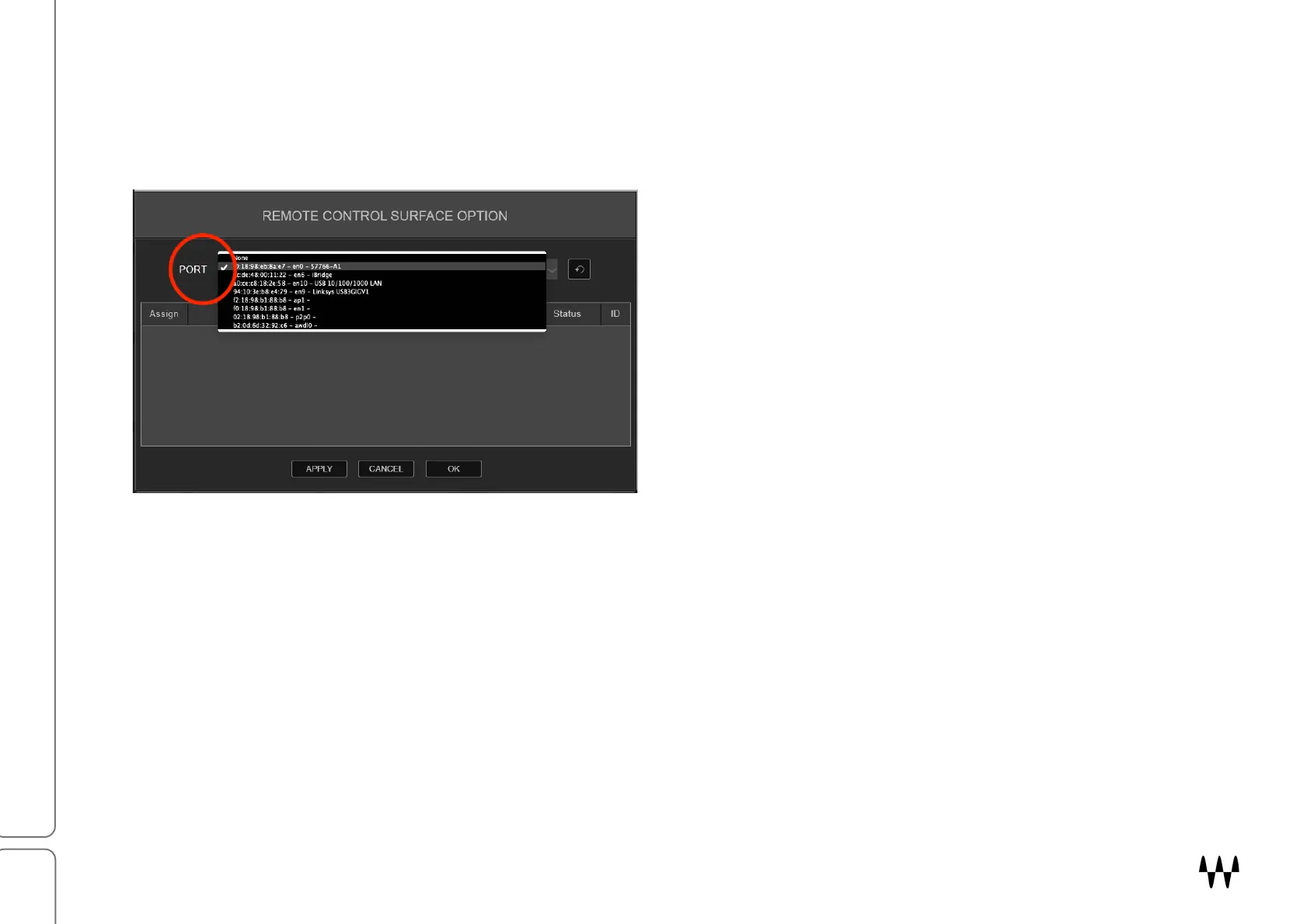 Select this LAN port in the Remote Control Surface Option panel.