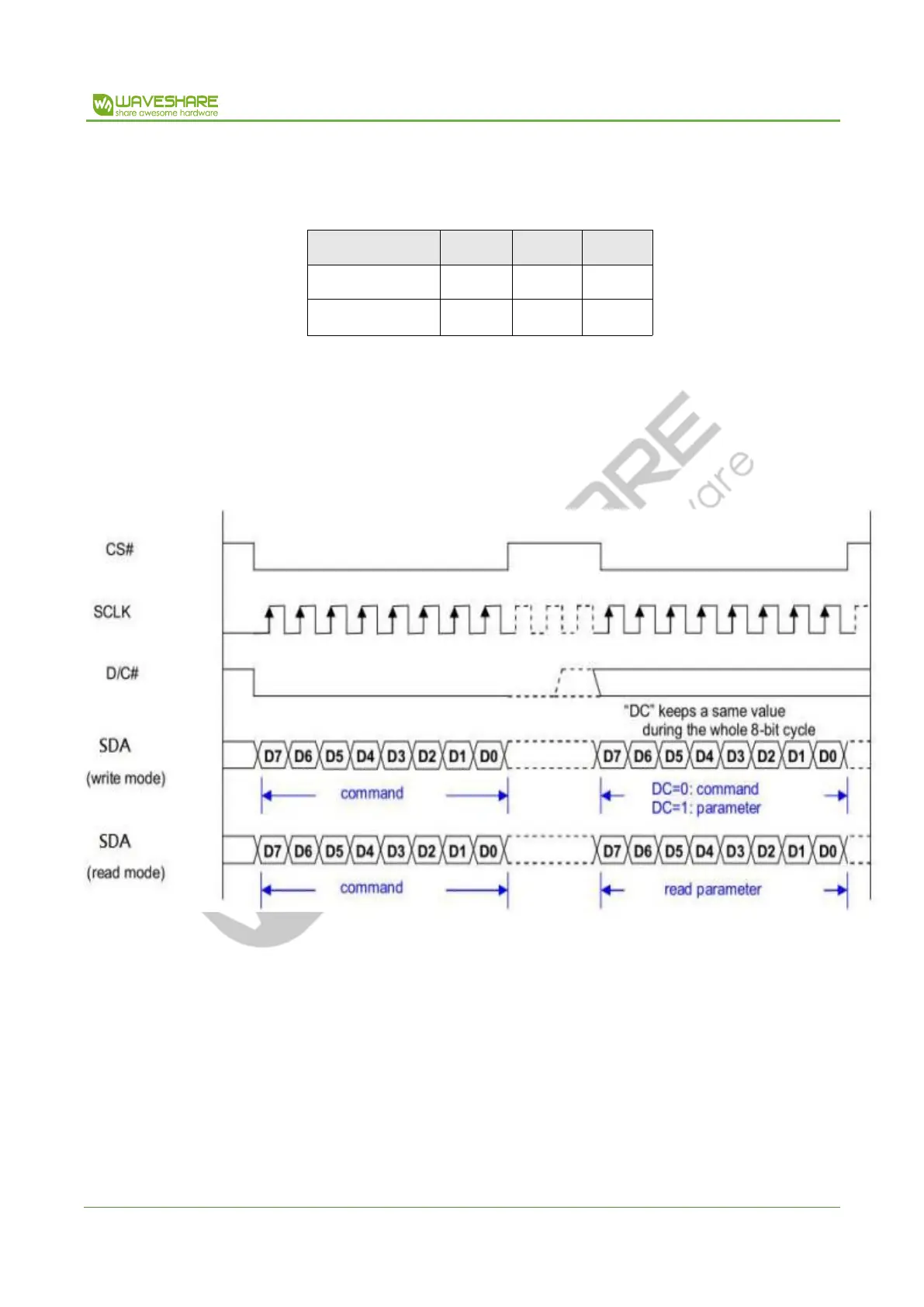 The 4-wire SPI consists of serial clock SCLK, serial data SDA, D/C#, CS#.