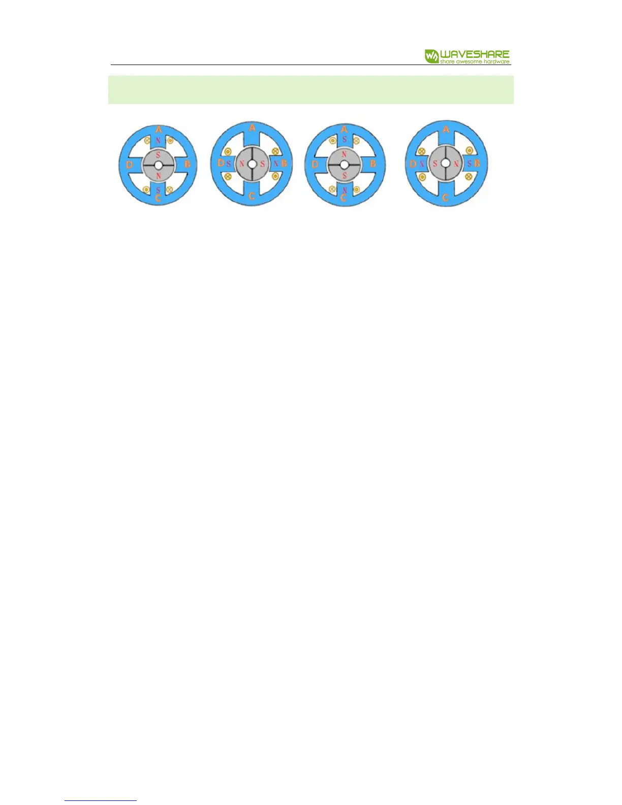 Status 3: coil A right in left out, coil C left in right out, motor rotate 90 degree against