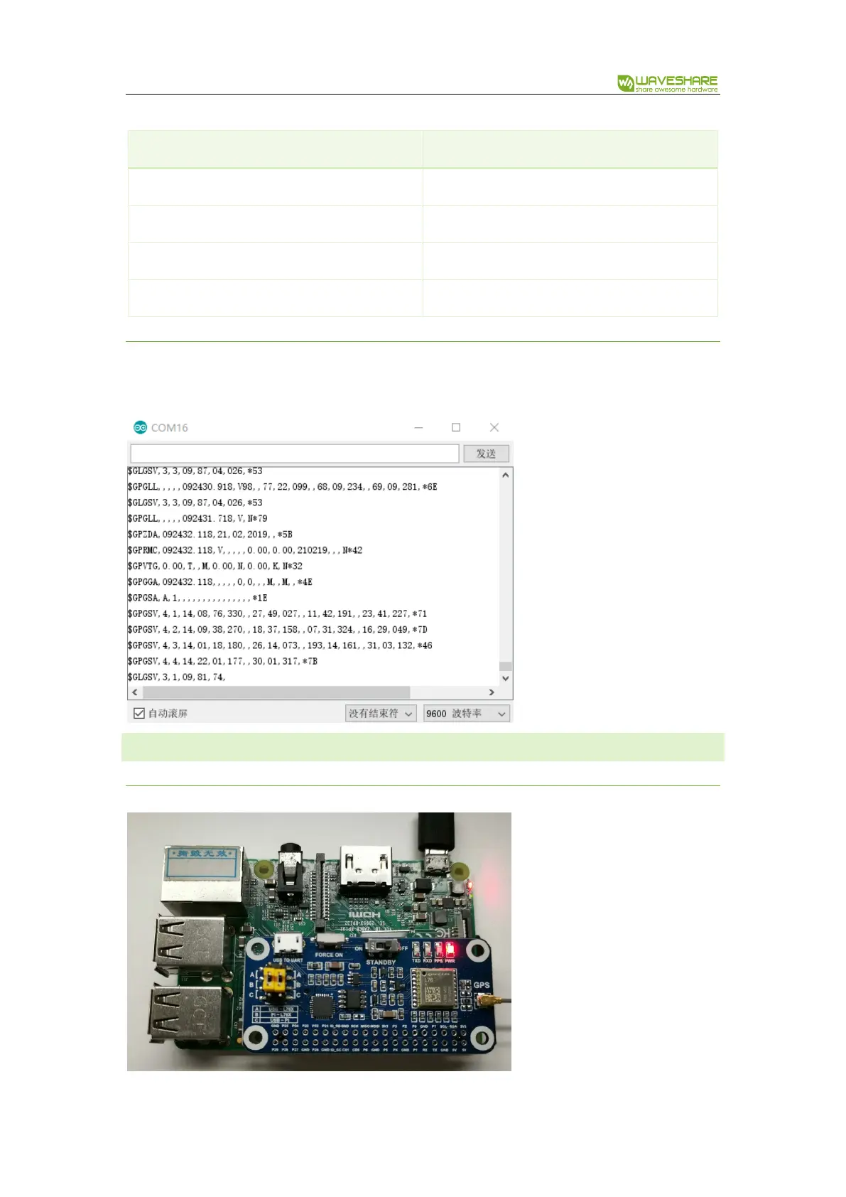 Waveshare L76X GPS HAT - Expected Result; Raspberry Pi Examples; Hardware Connection